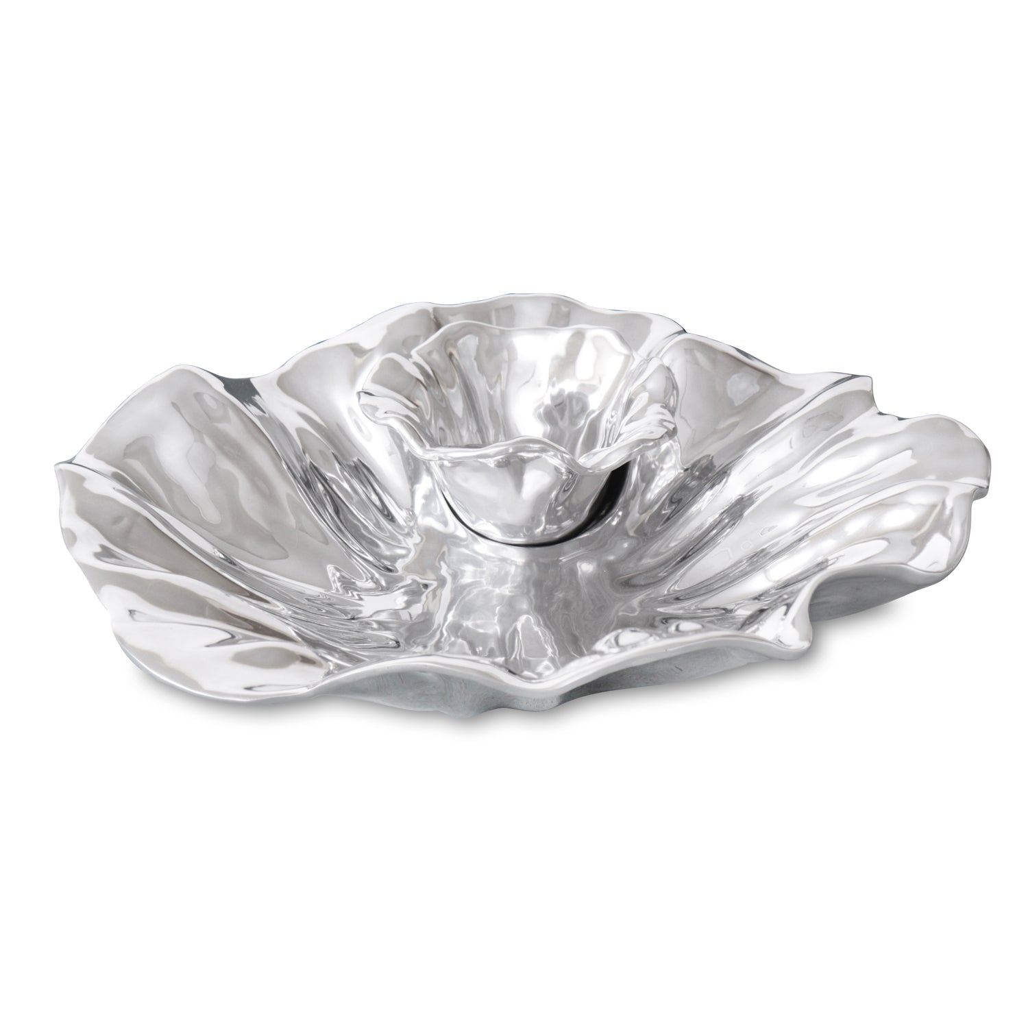 Beauty in Bloom. Designers Beatriz Ball and Gretchen Murchison share a desire to create pieces that are beautiful as well as functional. That's why we've collaborated with the like-minded Louisiana-based ceramicist on the vibrant Bloom Collection. Rendered in the company’s signature sand-cast metal, in luxury melamine, and in acrylic, the Bloom Collection comprises sculptural bowls, platters and more inspired by floral and botanical forms. As with the other Bloom pieces, the dynamic design of the two-part VENTO Bloom Chip and Dip in our signature hand-polished metal features rippling petal-like movement, creating an eye-catching serving piece that combines beauty, artistry and functionality. Great on its own, or combined with other Bloom shapes and sizes, this handsome chip and dip will be the life of the party. The dip bowl is easily removable and may be used on its own. Beatriz Ball’s intensely handmade products use eco-friendly and sustainable materials and are crafted by artisans who trace a heritage of metalworking for generations. Made of a top quality, FDA safe, easy-care friendly aluminum alloy.