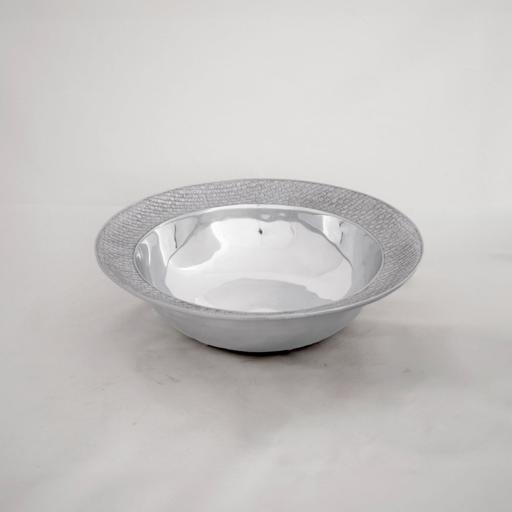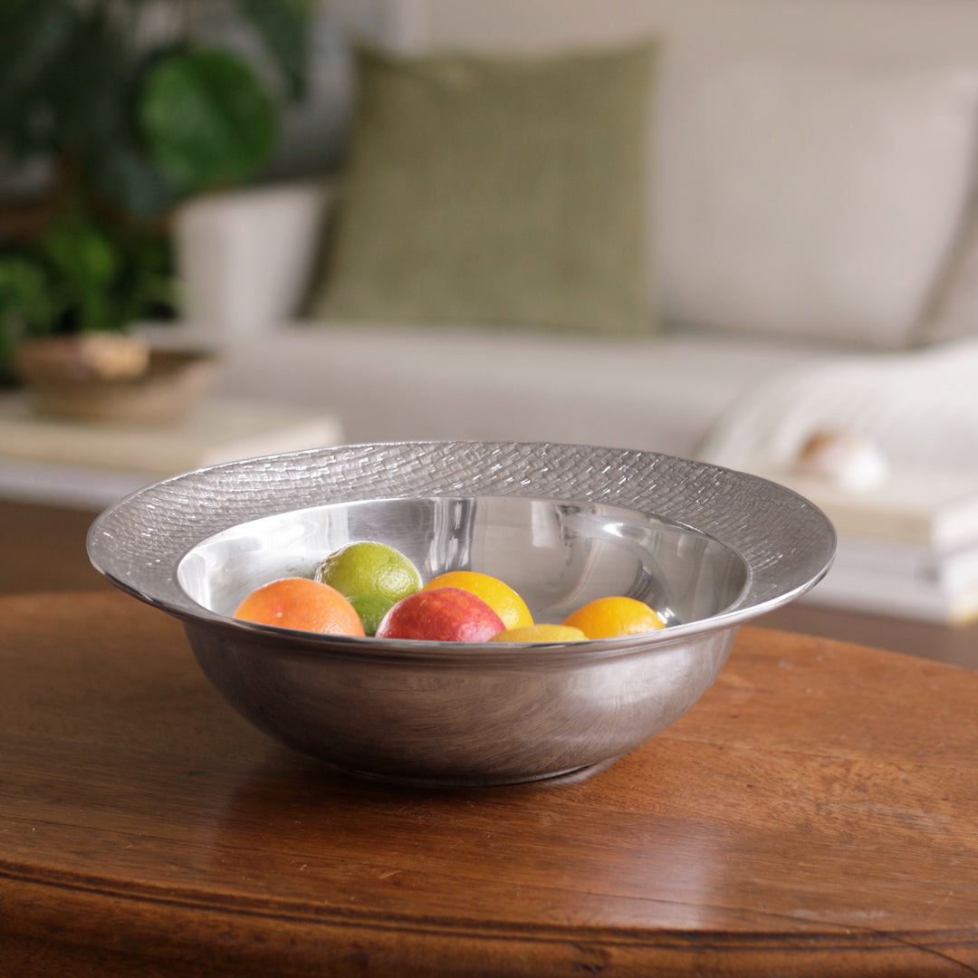 Pure luxe! Nassau, the capitol of the Bahamas, offers not only an exciting port-of-call and beautiful beachfront, but also a rich history and lively island culture. Beatriz Ball captures the spirit of the glamourous Caribbean destination in the newest Nassau selection, part of the popular Soho Collection featuring richly hand-polished metallic finishes. The ample SOHO Nassau Large Bowl features a gleaming and generous surface that evokes the good life. Presented in our signature metalware, the large bowl fits seamlessly with the brand’s handmade aesthetic, and blends perfectly with today’s trends for casual décor and entertaining. With a classic shape, great styling, and brilliant silvery surface, the tarnish free metal piece enhances anything you serve on it. This piece is perfect for salads and fresh fruit. Ideal addition to the kitchen island. Pair with other Nassau pieces for a striking curated tablescape. Beatriz Ball’s intensely handmade products employ eco-friendly and sustainable materials and are crafted by artisans who trace a heritage of metalworking for generations. An original Beatriz Ball design, sustainably handmade of a top quality, FDA safe, easy-care aluminum alloy. Hand wash and dry.