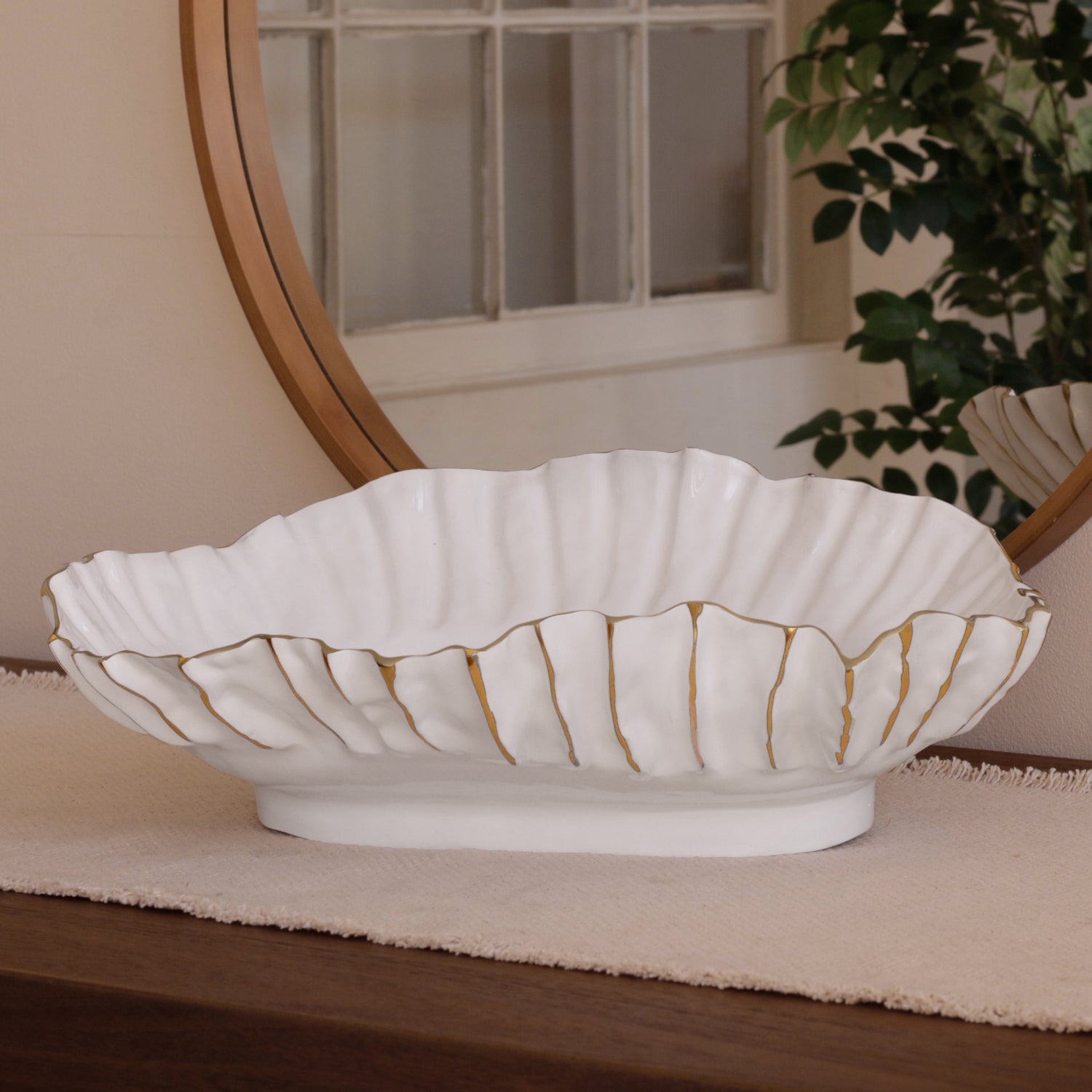 THANNI Mystic Large Oval Bowl (White and Gold)