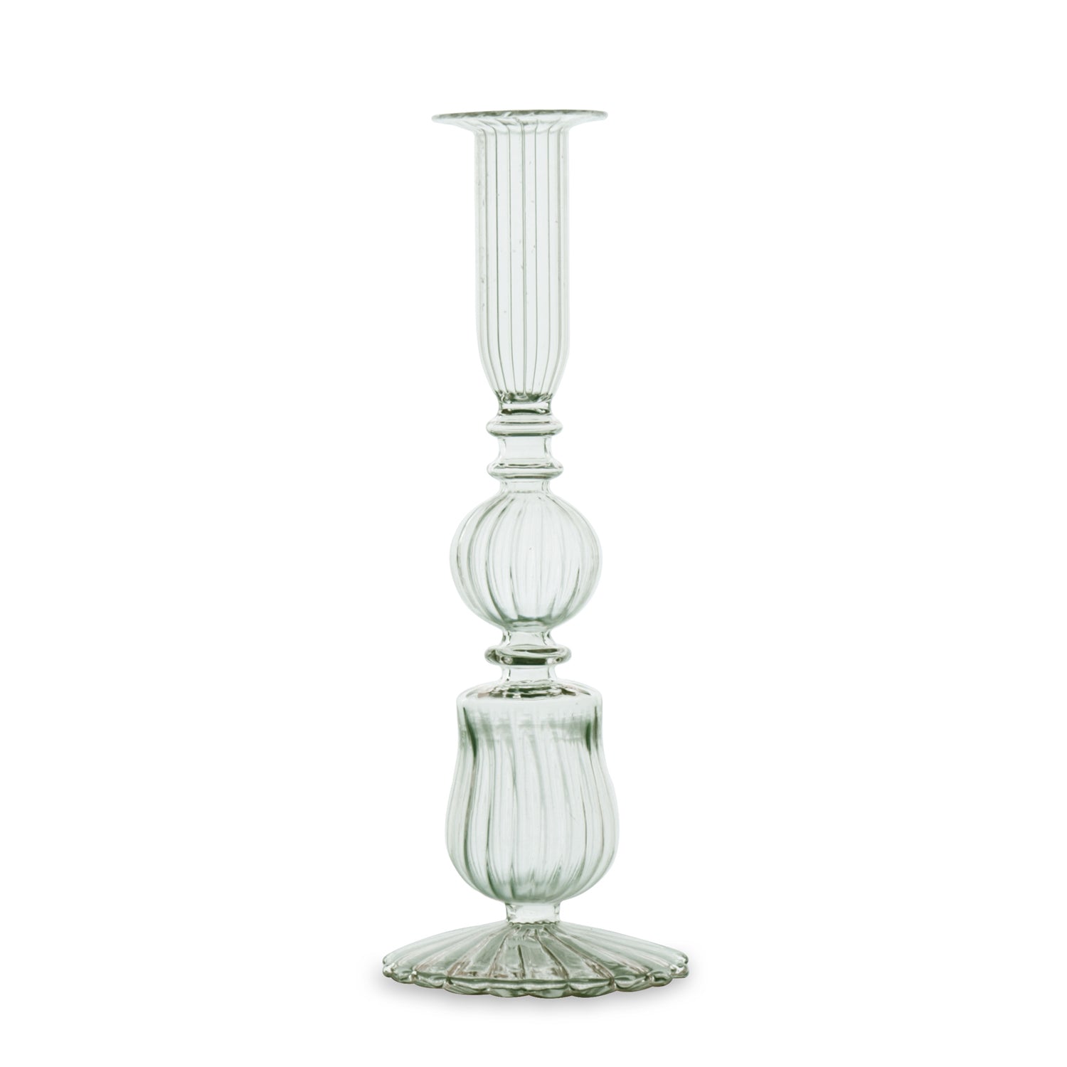 Rooted in tradition; designed for fun! Our Cambridge Collection offers a spirited rebellion against the sleek minimalism of much of contemporary design. Rooted in tradition, but filled with character and charm, the Cambridge Sophia 9" Candlestick Holder in light green features heirloom-inspired styling, and a jewel-like brilliance and clarity. Guaranteed to add life to any environment, the candlestick holders can be topped with tapers in fun colors, and mixed and matched with Sophia and other Cambridge designs of various hues and sizes. A great addition to your home, the candlestick holders are sold as a set of two. Made exclusively for Beatriz Ball.