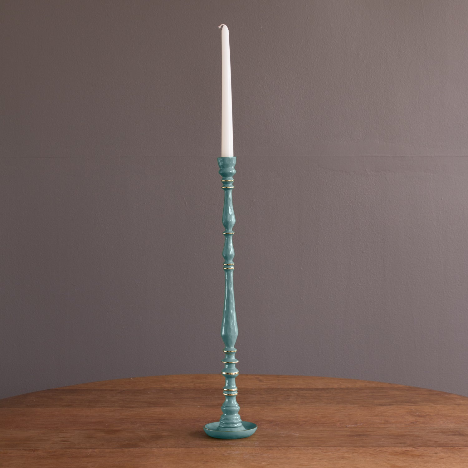 Tall and impressive, the vibrantly colored ENCANTO Crosby Candlestick Holders add a luminous touch of glamour to the home. An updated classic, the ENCANTO Crosby Large Candlestick Holder (Turquoise) is notable for its thoughtful design, expert craftsmanship and stately proportions. Guaranteed to add a luxe look to any space, the candlestick holders can be topped with tapers in fun colors, and mixed and matched with other designs for a lively table. A great addition to the home, present them singly, in pairs, or in graduated sizes. Beatriz Ballโ€™s intensely handmade products use eco-friendly and sustainable materials and are crafted by artisans who trace a heritage of metalworking for generations. Made of a top quality, easy-care, aluminum alloy with an enamel finish. This item is for decorative purposes only and is not food safe.