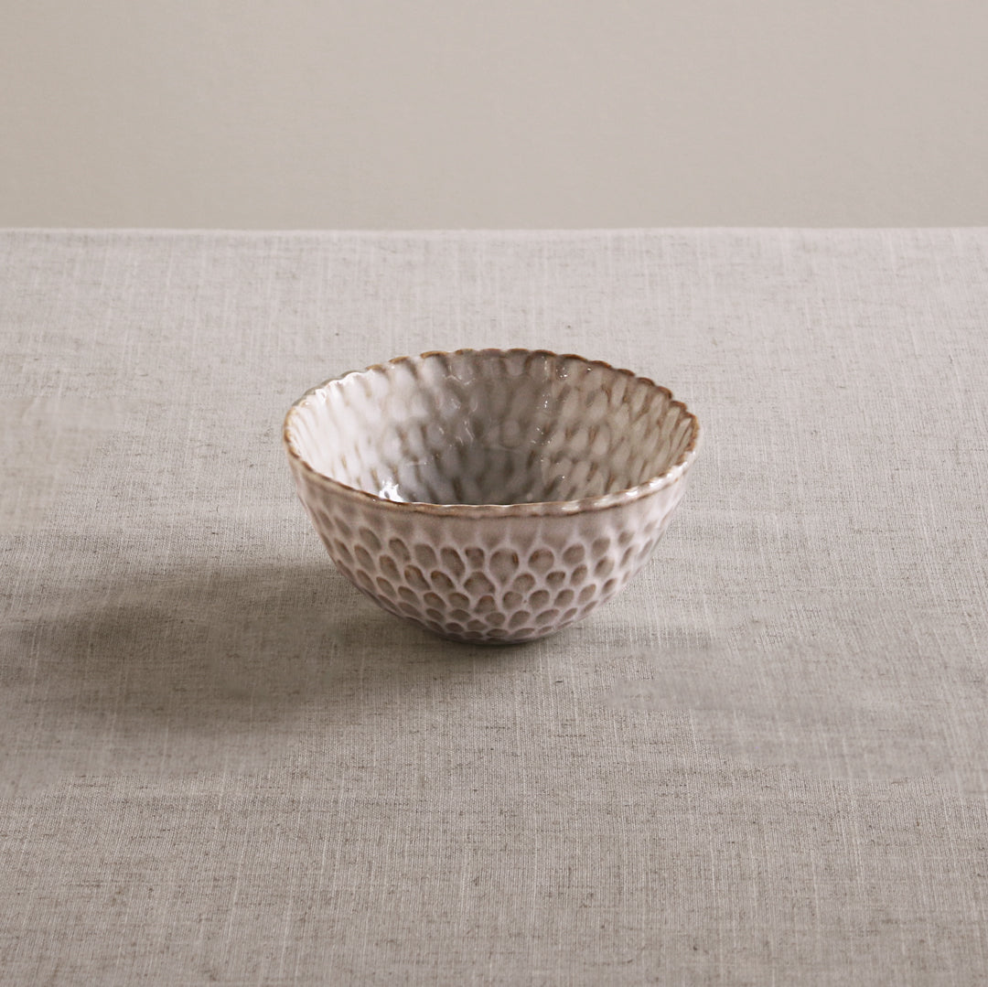 CERAMIC Aurora Dip Bowl Set of 2 (Dusty White) is a perfect example, and proof that no two pieces are ever alike. Enlivened with a textured and patterned surface, its richly irregular appearance spotlights the art of hand glazing, while its form demonstrates the timeless appeal and durability of fired stoneware.