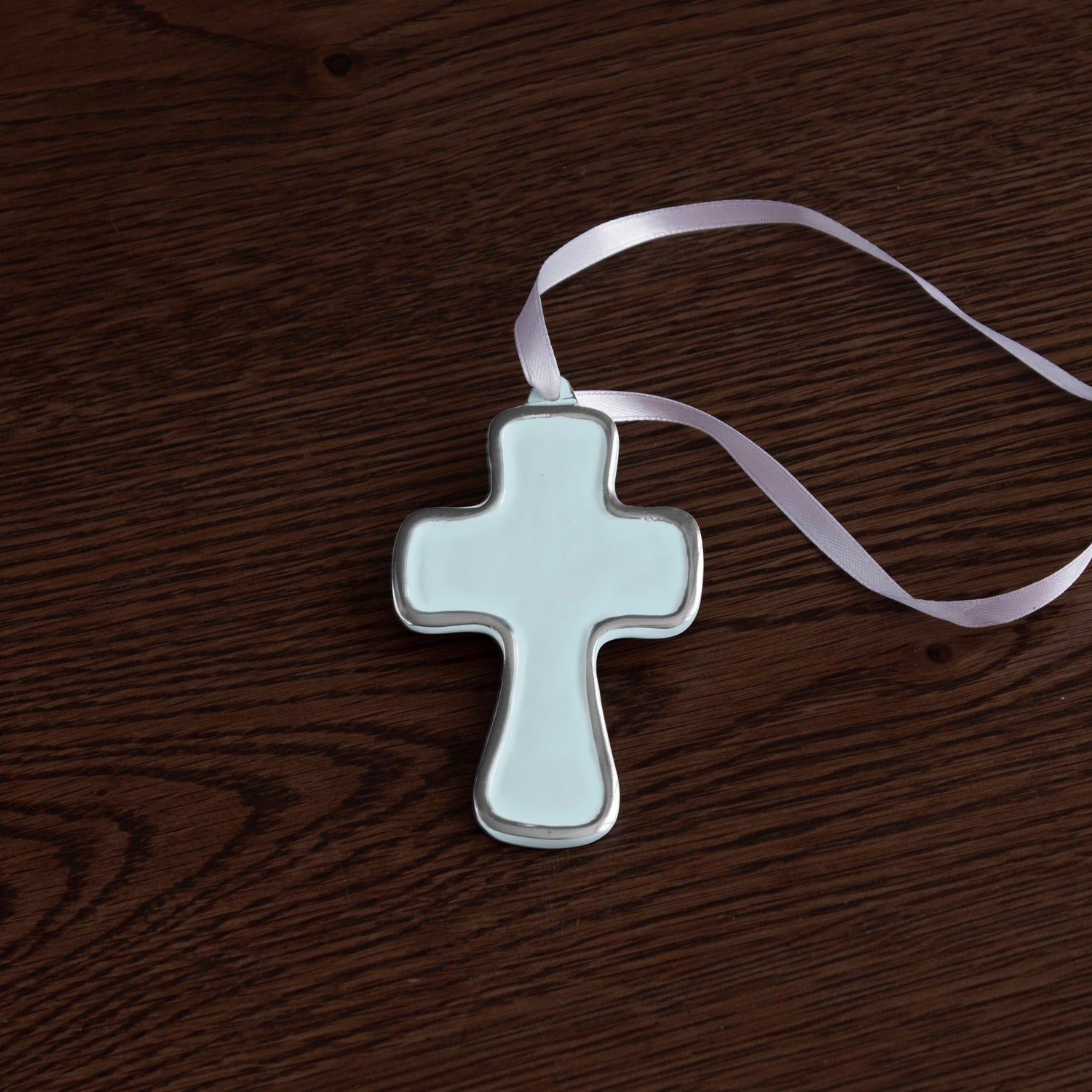 Of heirloom quality, this lovely cross ornament may be hung from the branches of a Christmas tree, suspended from a length of ribbon, or placed flat on a table as a decorative accent. This handsome enameled metal cross makes a heartfelt gift for Christmas or Easter, weddings, christenings, first communions, and other special occasions, and will be cherished for years to come.
