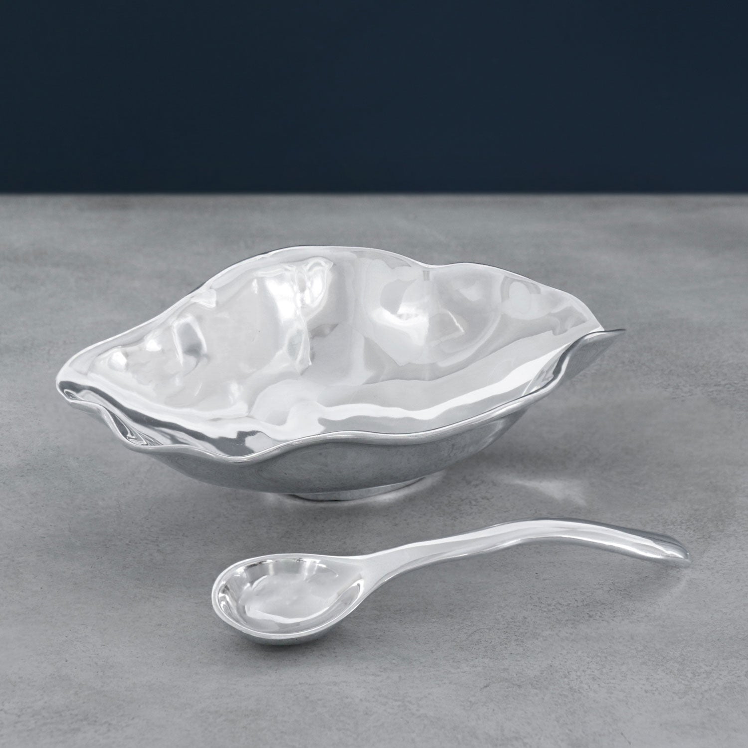Spoon up something wonderful in our VENTO Claire Medium Bowl with Spoon! The sensational 2-part piece is notable for its generous shape, gleaming surface and exuberant design; the accompanying spoon makes it an item that's sure to delight. Great for serving salsa, sauces or sides, the Claire bowl and spoon combo makes a dramatic statement wherever it is placed. Passionately handmade by skilled artisans in our own foundry, it makes a sensational luxe gift. Beatriz Ball’s intensely handmade products employ eco-friendly and sustainable materials and are crafted by artisans who trace a heritage of metalworking for generations. An original Beatriz Ball design, sustainably handmade of a top quality, FDA safe, easy-care, oven and freezer friendly aluminum alloy.