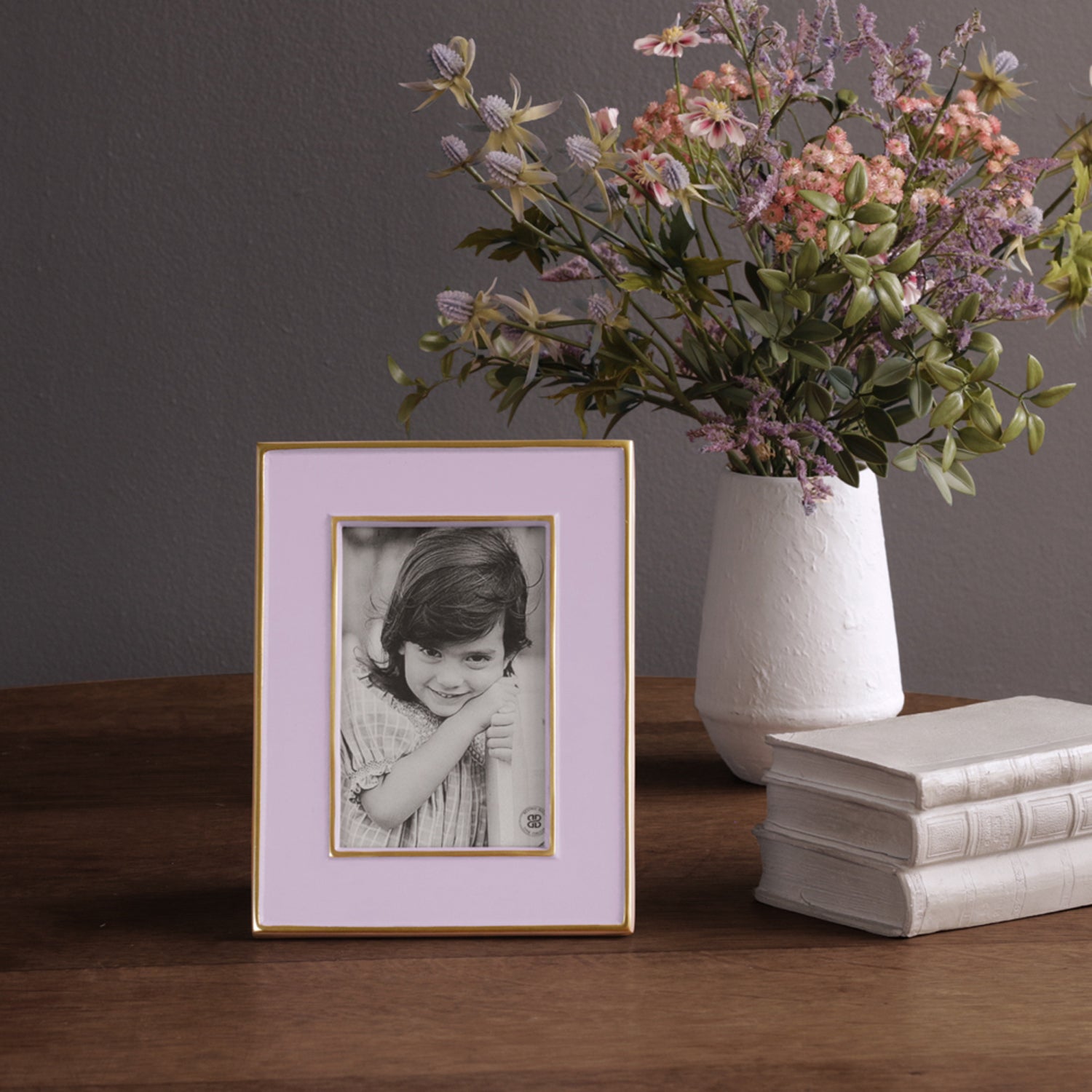 Beatriz Ball's FRAME Encanto Jason 4 x 6 (Lilac) is the very essence of beautifully sophisticated understatement, strikingly presented in colorfully enameled metal, rimmed in gold. With a precisely classic rectangular shape, the frame is ideal for displaying your favorite 4x6 photo in ENCANTO Jason style. Of heirloom quality, this frame may be displayed vertically or horizontally, and makes a perfect gift for any occassion. This handsome enameled frame will add a distinctive decorative touch to any room and will be cherished for years to come.