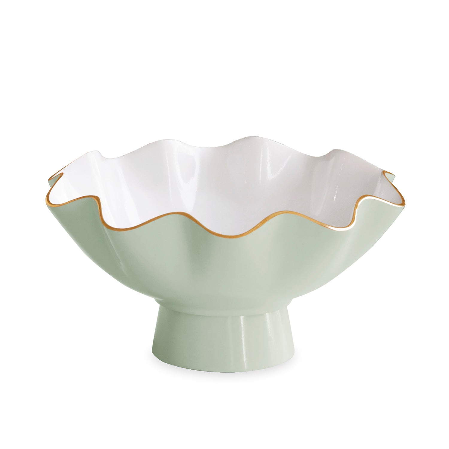 Elevate your style! Beatriz Ball continues to innovate and add new finishes and techniques to its handmade offerings with the multicolored ENCANTO Collection--incorporating vibrant enameled colors and gold-tone details on bowls, trays, platters, ice buckets and picture frames. Your table will be the canvas, and your paint palette pieces of delightful colors! Next level design. Notable for its gently curving sides, elegant rise, and brilliant two-tone finish rimmed in gold, the ENCANTO Carola Small Pedestal (Pistachio and White) is a fabulous design that is as practical as it is decorative. Ideal for fruit, snacks and desserts, combine with other ENCANTO Carola pieces for an elevated serving set. The ENCANTO Collection pieces are all about classic shapes, re-invented in lively colors. Fashionably tailored in delightful colors, ENCANTO items are fabulous gift items for brides, and perfect for anyone who loves to entertain and decorate. On trend, their beautiful designs with curving forms add grace and sophistication to any setting. Makes an awesome centerpiece! Beatriz Ballโ€™s intensely handmade products use eco-friendly and sustainable materials and are crafted by artisans who trace a heritage of metalworking for generations. Made of a top quality, easy-care, aluminum alloy with a food safe enamel finish. Dishwasher safe.