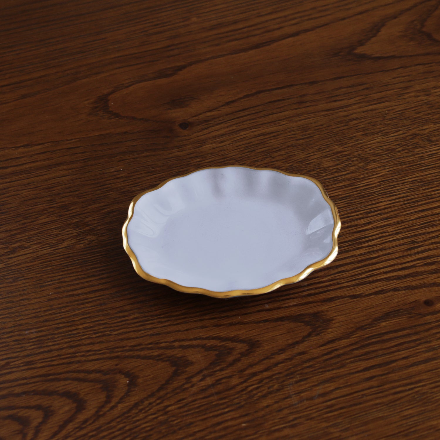 Notable for its elegant shape, and brilliant enameled finish, rimmed in gold, the ENCANTO Ring Holder (Periwinkle) is great on the vanity, or use to hold earrings and other small jewelry on your bedside table. Beatriz Ball’s intensely handmade products use eco-friendly and sustainable materials and are crafted by artisans who trace a heritage of metalworking for generations. Made of a top quality, easy-care, aluminum alloy with an enamel finish. This item is for decorative purposes only.