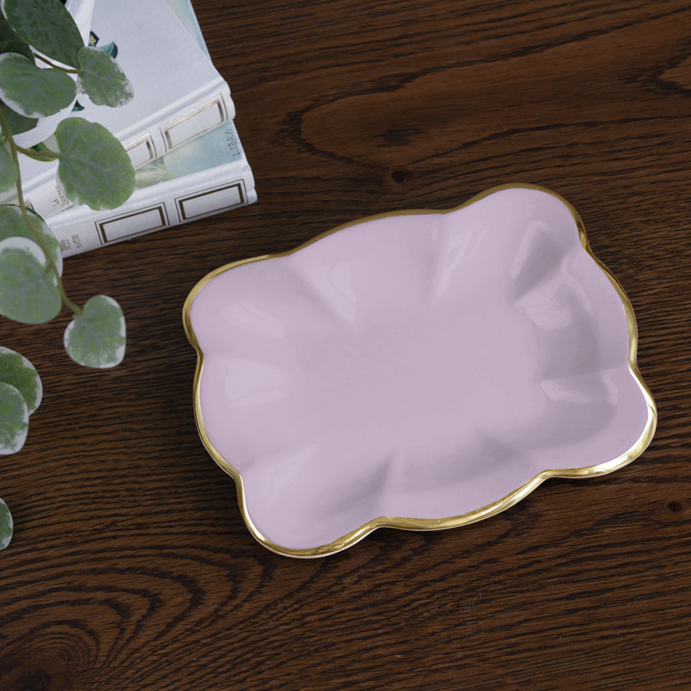 Notable for its compact size, elegant shape, and brilliant lilac finish rimmed in gold, the ENCANTO Devon Small Tray (Lilac) is an awesome design that is as handy as it is decorative. Made for decorative use, the piece is great on the desk, vanity or bedside table. The ENCANTO Devon pieces are all about classic shapes, re-invented in lively colors. Fashionably tailored, ENCANTO Devon items are fabulous gift items for brides, and perfect for anyone who loves to decorate. On trend, their beautiful designs with curving forms add grace and sophistication to any setting. Beatriz Ball’s intensely handmade products use eco-friendly and sustainable materials and are crafted by artisans who trace a heritage of metalworking for generations. Made of a top quality, easy-care, aluminum alloy with an enamel finish. This item is for decorative purposes only and is not food safe. Dishwasher safe.
