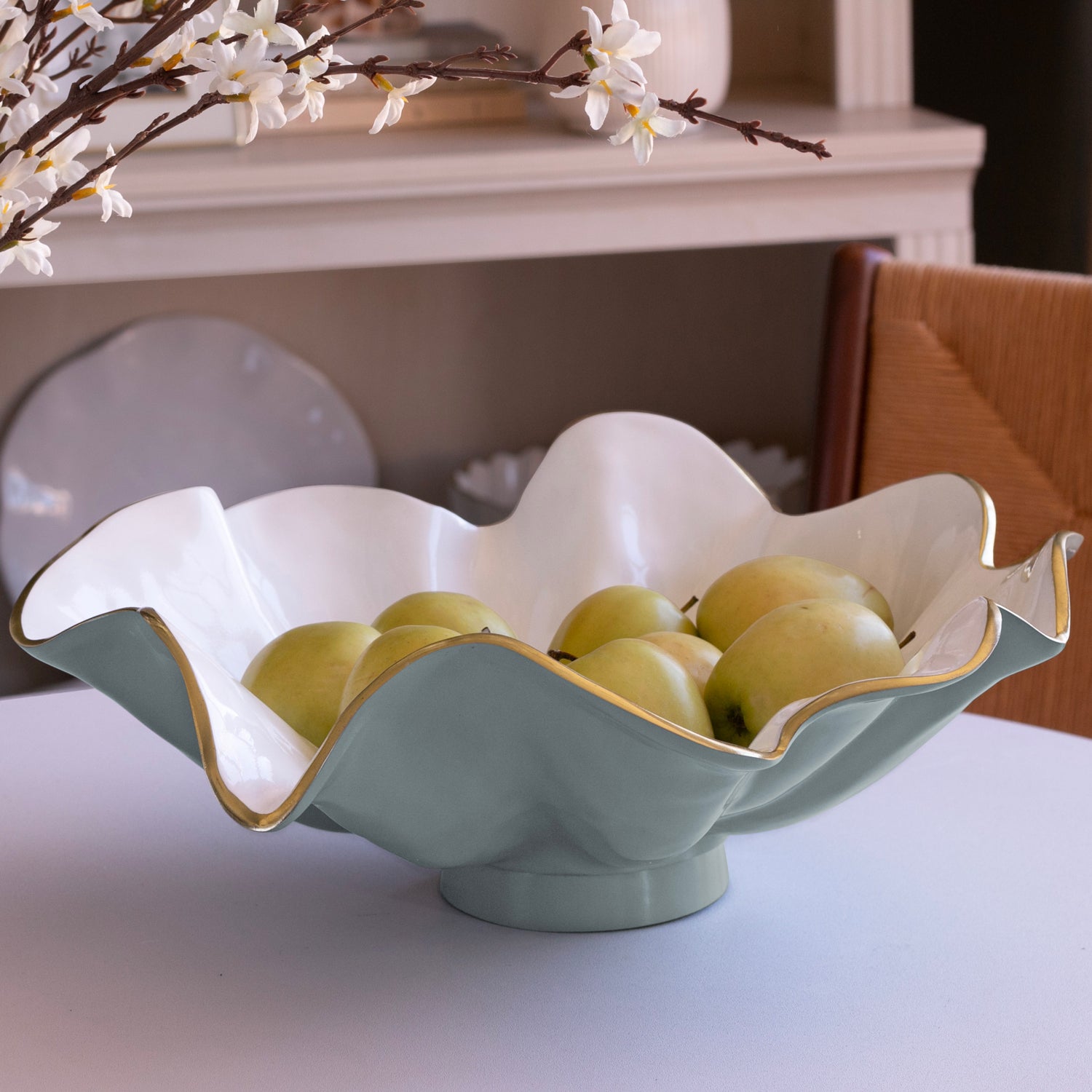 Beautiful, functional, and timeless. The ENCANTO Aries Bowl (Slate and White) in two-tone enamel with gold accents blends sculptural form and practical use.