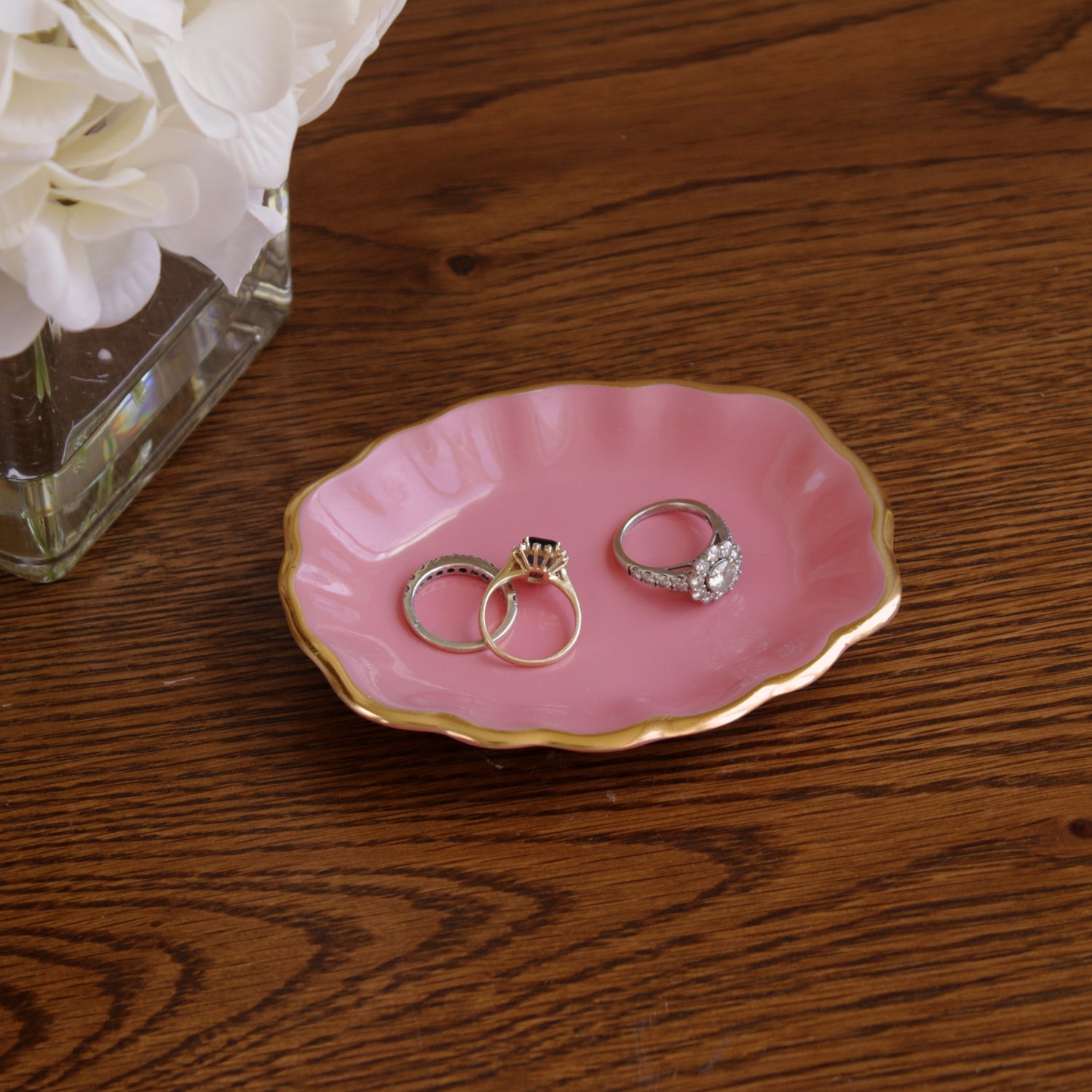 Of heirloom quality, the ENCANTO Ring Holder (Pink) makes a perfect gift for engagements, bridal showers, weddings, anniversaries, bachelorette gifts or other special occasions. It's perfect for placing your wedding ring, engagement ring, or earrings in a safe place.