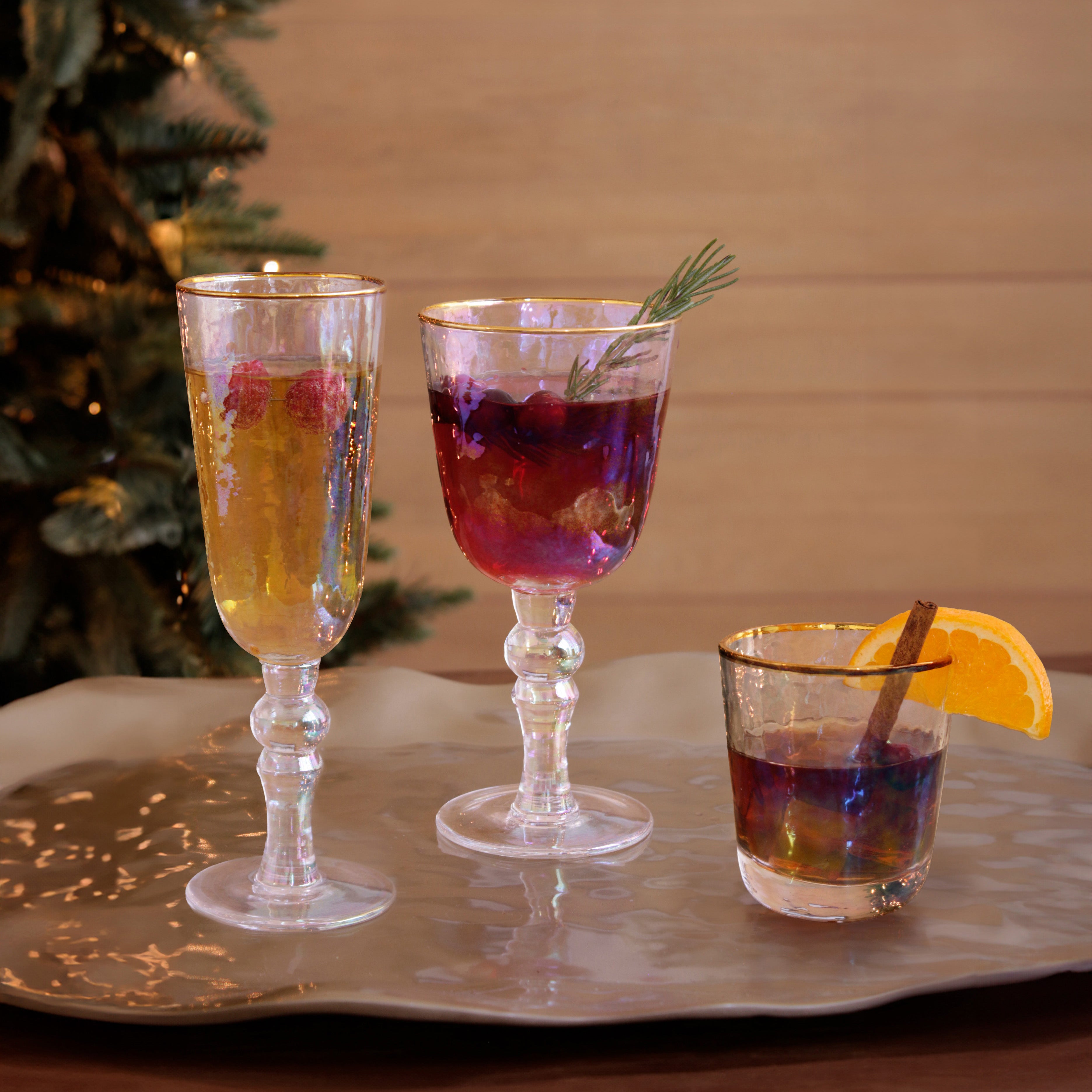 A certain luster ... Classic shapes, iridescent surfaces and gold halo rims are hallmarks of our Mother of Pearl glassware collection.