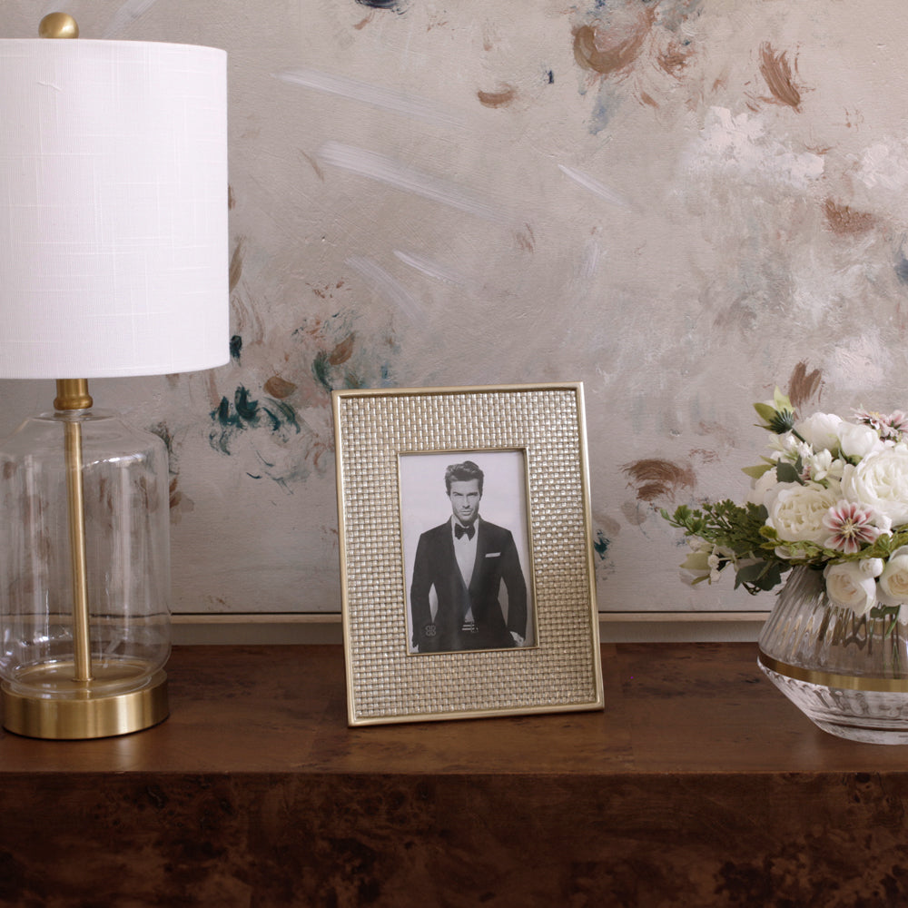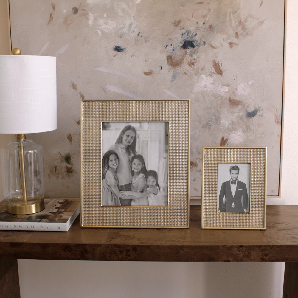 Say, “You’re wonderful. Unique. I love you" with a deliciously glamourous gold-tone frame from Beatriz Ball's FRAME Sierra Modern Tiffany collection. Our FRAME Sierra Modern Tiffany 4 x 6 (Gold) is richly detailed and handsomely styled and made special by its proprietary gold-tone surface. With its Sierra Modern metallic finish, the glistening texture provides a light-catching border for a favorite photo. Makes a luxurious gift for anyone on your list. Some of our most exciting new Beatriz Ball frames are a celebration of glamourous Holly Golightly style, and the handsome frame looks stunning wherever it’s placed. The delightfully decorative piece adds a modern new edge to Beatriz Ball’s award-winning designs. The luxe frame feels both contemporary and classic at the same time and transcends all interior styles and trends. Stunning pieces, timeless and unique, the FRAME Sierra Modern Tiffany collection brings you designs that have never been seen before. An original Beatriz Ball design handmade of an FDA safe, easy-care aluminum alloy with a special metallic finish. Tarnish free.