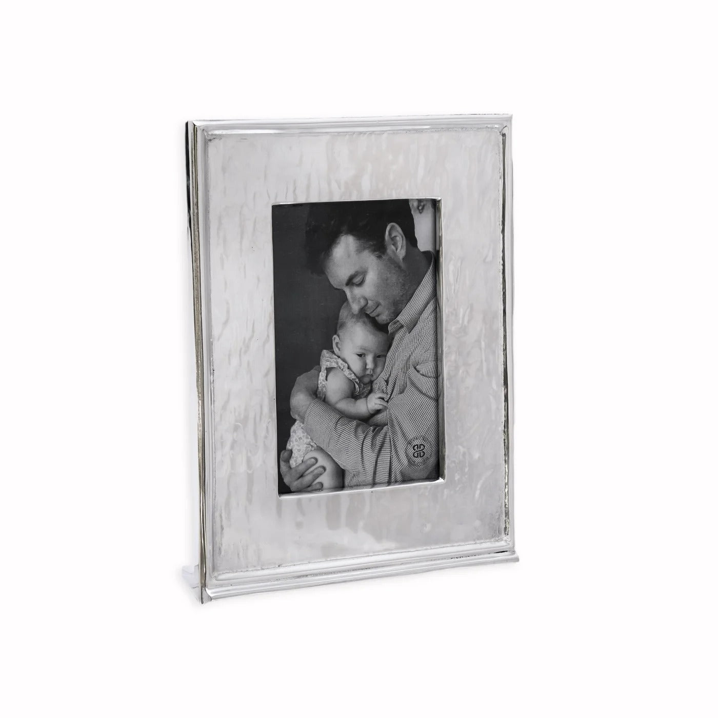 A bright idea. With its silvery finish, the FRAME Emerson 4 X 6 Vertical of polished metal enhances your favorite 4x6 vertical photo, and looks brilliant when displayed on the mantle, desk, or shelf. Composed of a gleaming hand-finished silvery metal that keeps its shine and never needs polishing, the frame has been designed to stand verically without the aid of support. Designer Beatriz Ball says of the shimmering simplicity of the Emerson frames, "Love this cool new finish, it glimmers like moonlight on water." The frame makes a fine wedding gift--or for any special occasion--and is an elegant solution whenever a metal frame is called for. Beatriz Ball’s intensely handmade products employ eco-friendly and sustainable materials and are crafted by artisans who trace a heritage of metalworking for generations. An original Beatriz Ball design, sustainably handmade of a top quality, easy-care, aluminum alloy. Tarnish free.