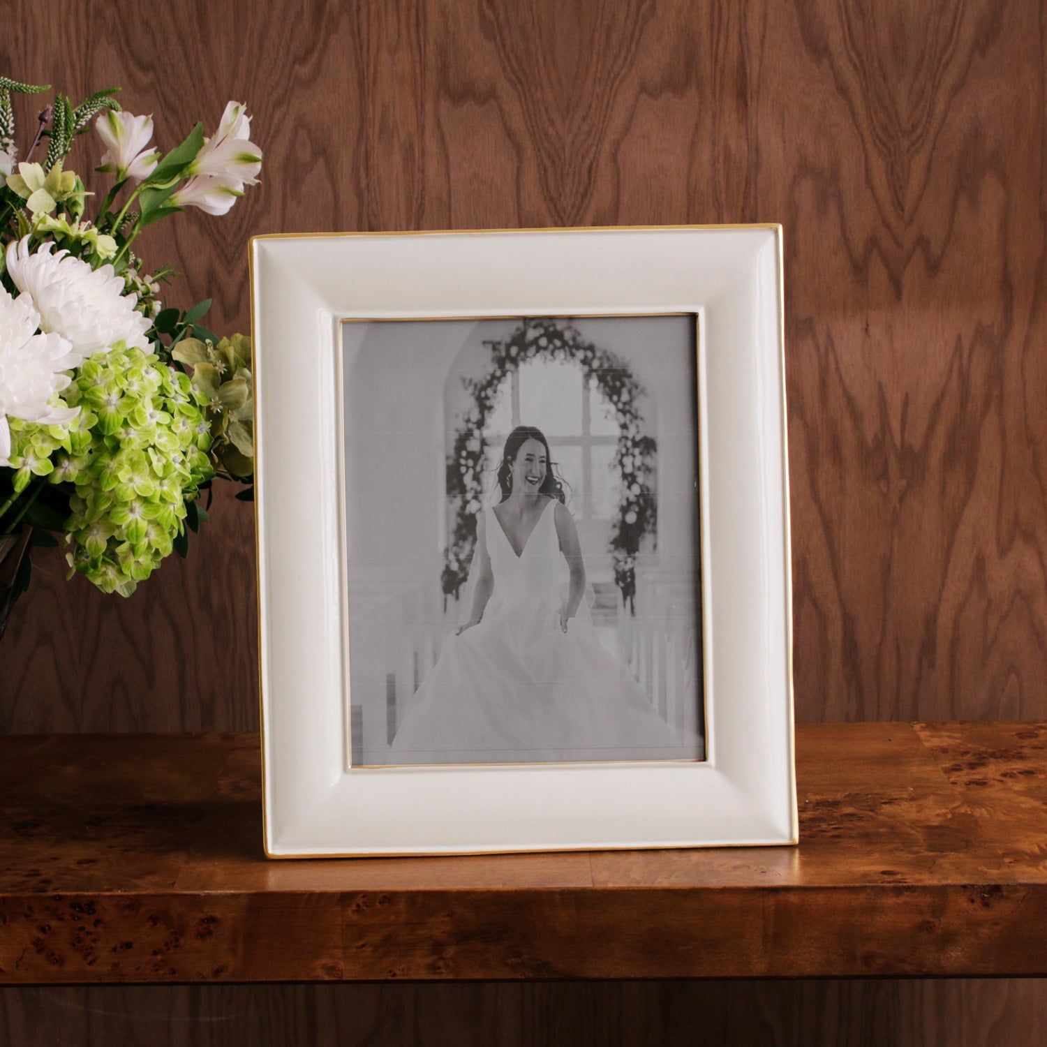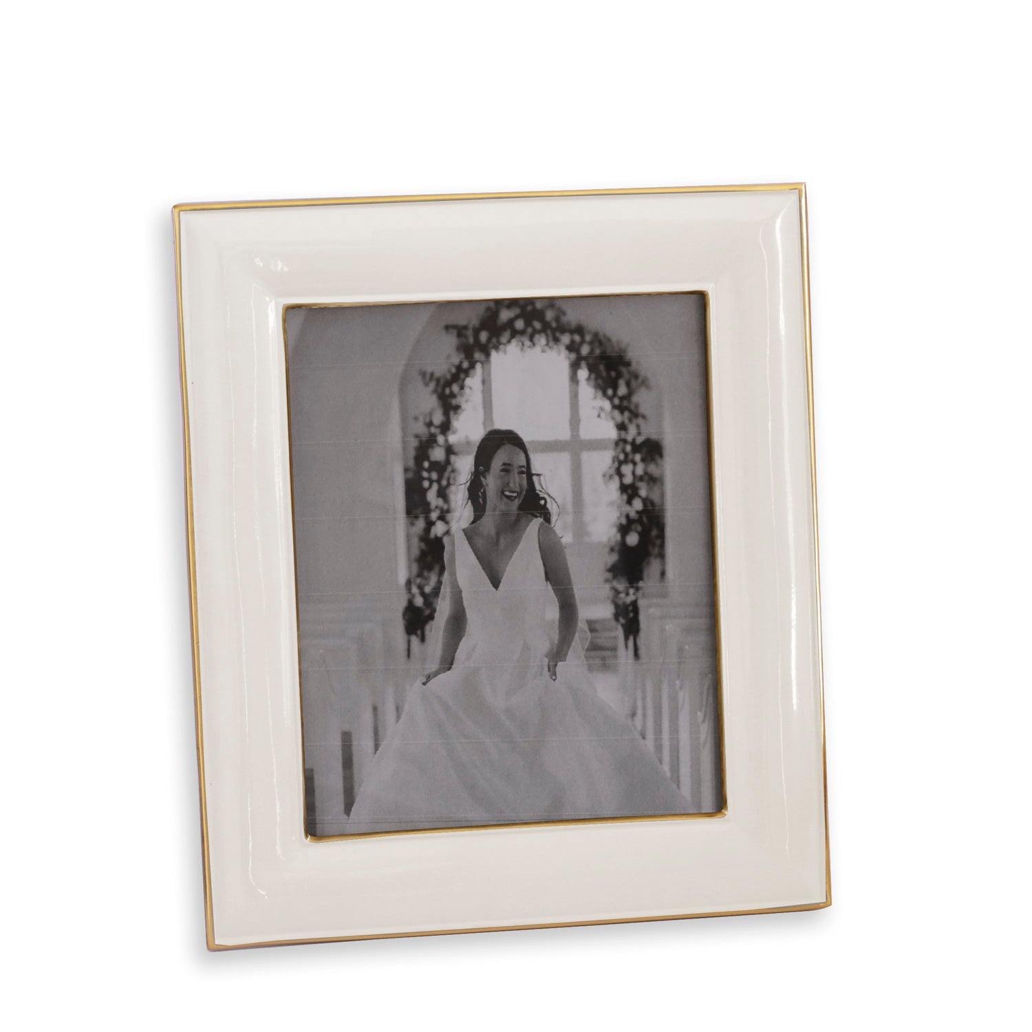 Timeless style for your treasured photos. The Charlotte 8x10 Frame in cream features a soft cream enamel finish accented by a classic beaded border, adding an elegant touch to your display. Designed to hold an 8x10 photo, it can be used vertically or horizontally. A thoughtful gift for weddings, anniversaries, or graduations. Handcrafted using our signature sand-casting process and finished with a durable enamel. Made of eco-friendly aluminum alloy; for decorative use only.