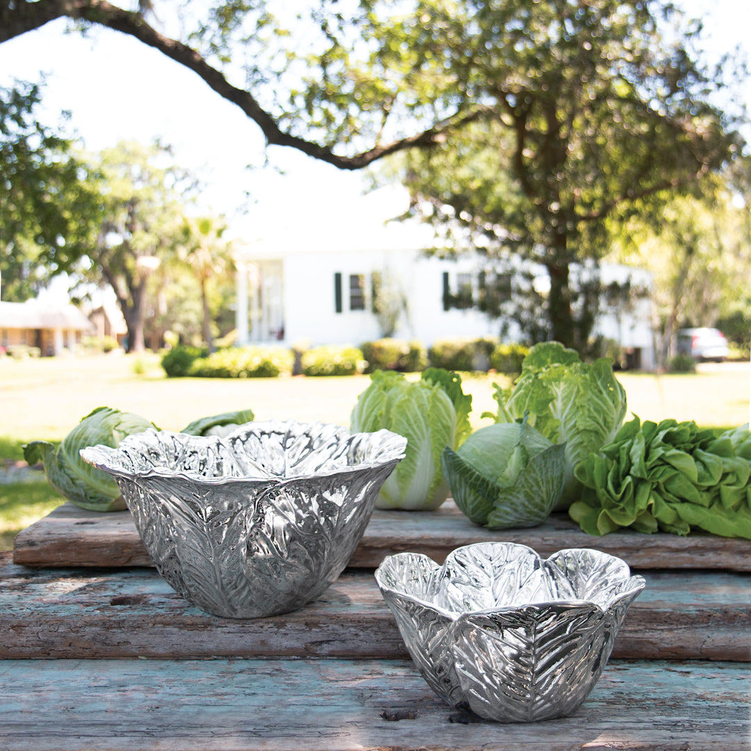 The Beatriz Ball GARDEN Cabbage medium decorative metal bowl is great for tossing smaller servings of leafy greens, and is ideal for sides, too.
