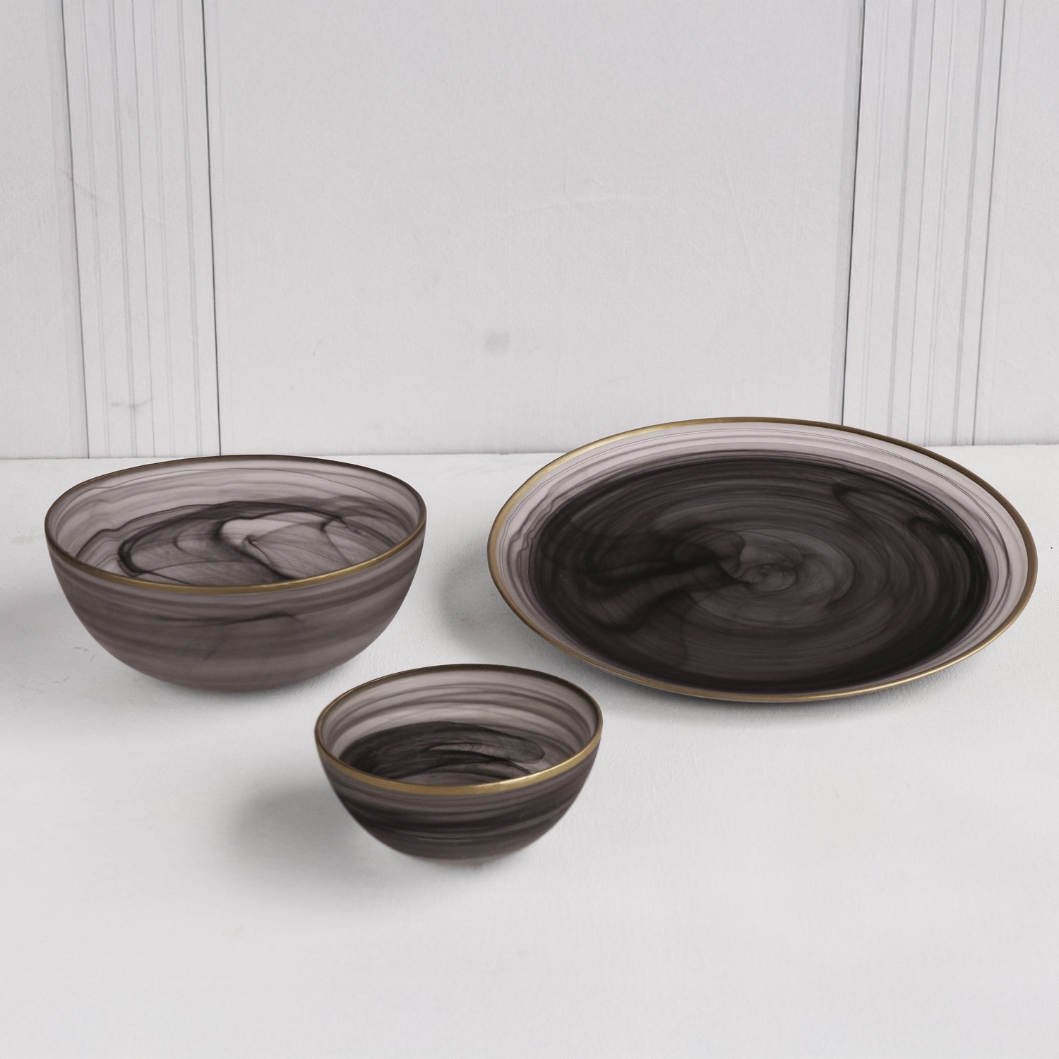 GLASS Frosted Black Alabaster Medium Bowl with Gold Rim (Black and Gold)