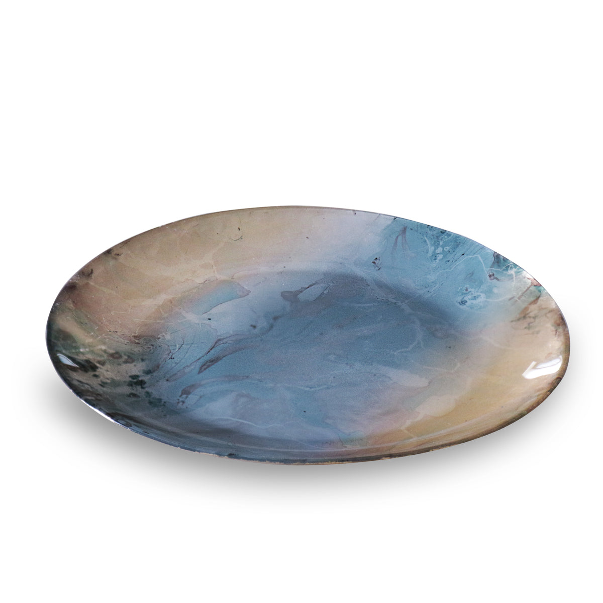 GLASS New Orleans Foil Leafing Round Platter (Light Teal & Gold)