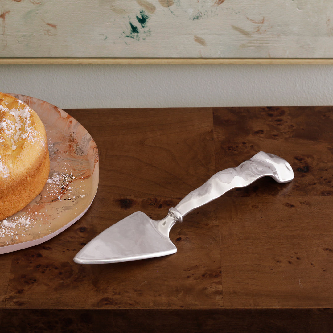 Looking for a good-looking server? Piece of cake! Our VENTO Cake Server combines the practicality of a spatula with the durability and elegance of artisanal sand-cast metalware. This mixture results in a server of supreme practicality and beauty. An elegant design in freeform VENTO Collection style, this server is not just a tool, but a handmade work of art. Pair it with any pedestal cake stand for a great serving set. An original Beatriz Ball design sustainably handmade of an FDA safe, easy-care, oven and freezer friendly aluminum alloy. Hand wash and dry.