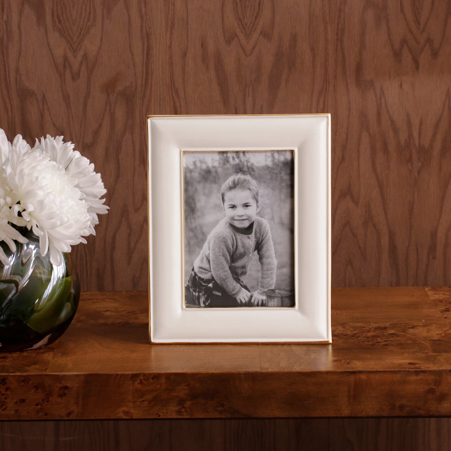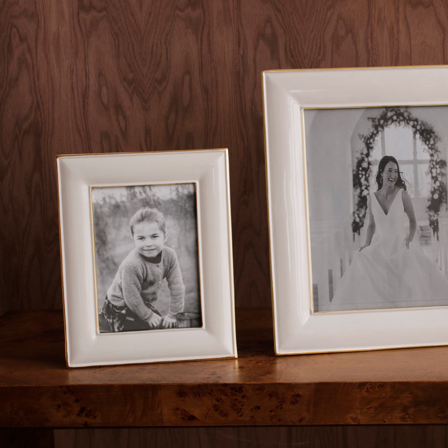 Classic elegance meets timeless design. The Charlotte 5x7 Frame in cream enamel features a lustrous finish with subtle beaded detailing, creating a sophisticated presentation for your favorite 5x7 photo.