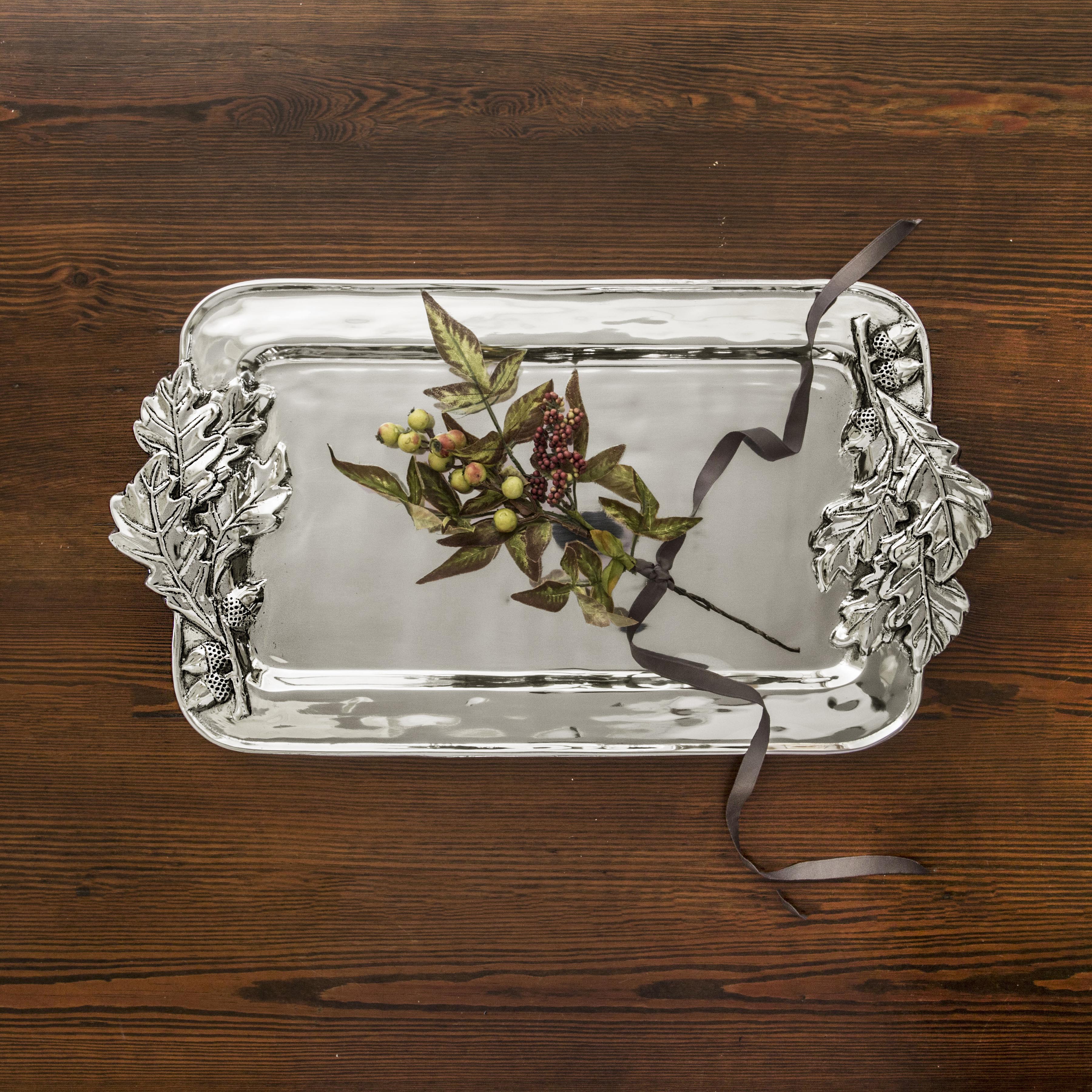 The Beatriz Ball holiday acorn large decorative metal tray is an indispensable serving piece with infinite possibilities for dramatic presentations. Freezer and oven friendly.
