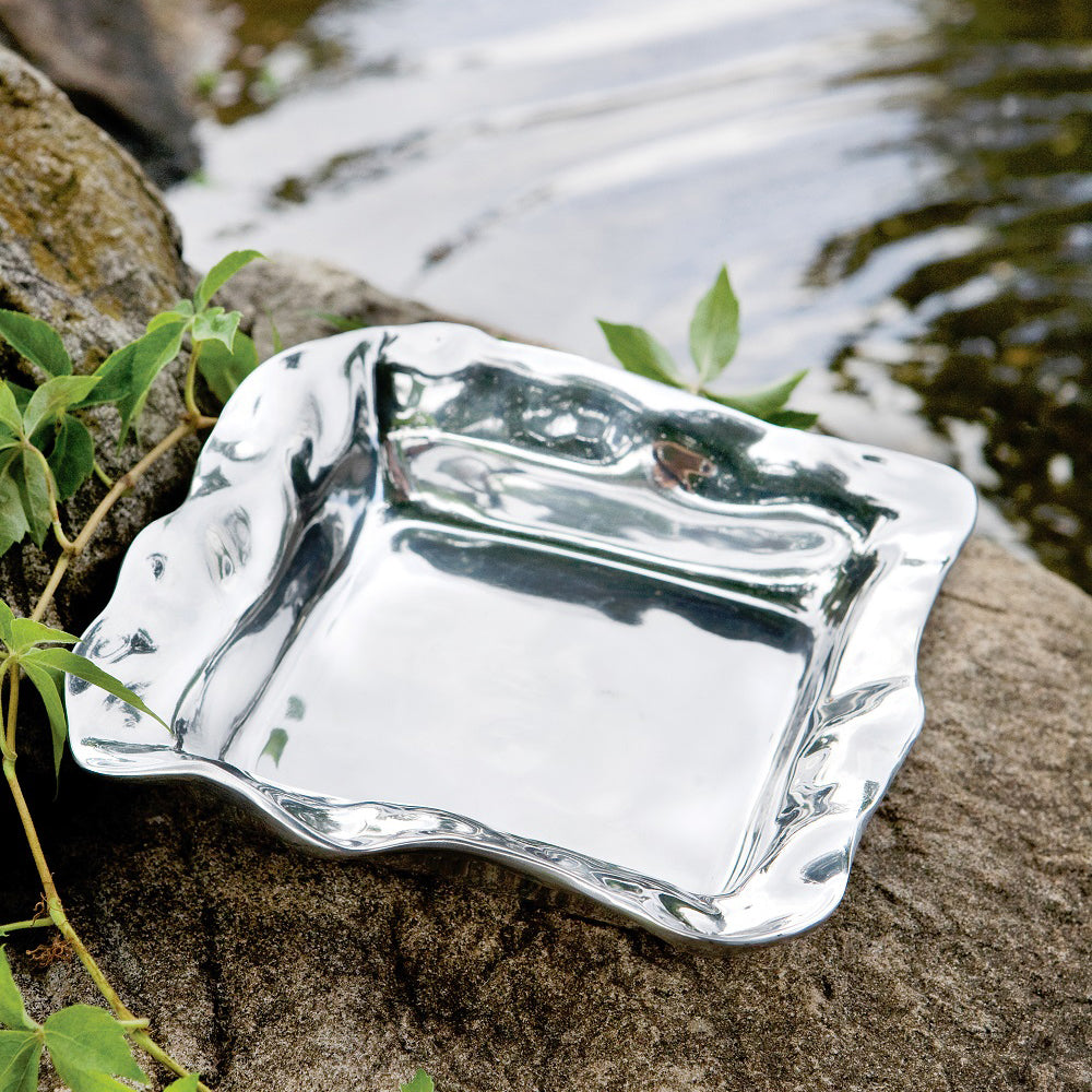 New from the GIFTABLES Collection, a stylish and functional napkin box in our bestselling Vento Collection style! Handsomely packaged, and irresistibly priced, the GIFTABLES Vento Napkin Box is extremely versatile. Carefully hand-polished, this brilliant piece can be used to hold candies, nuts, perfume bottles, paperclips, keys … and even napkins! An ideal gift, each comes with a set of hemstiched linen coasters. Coordinate with items from the VENTO collection. Made of an FDA safe, easy-care, oven and freezer friendly aluminum alloy.