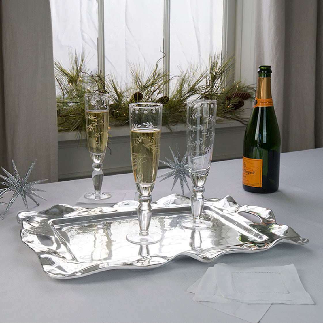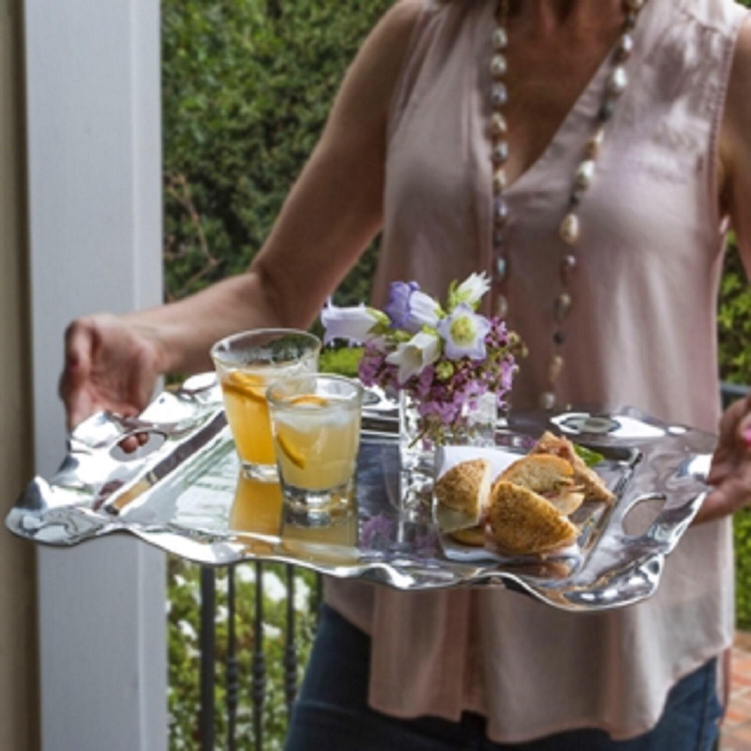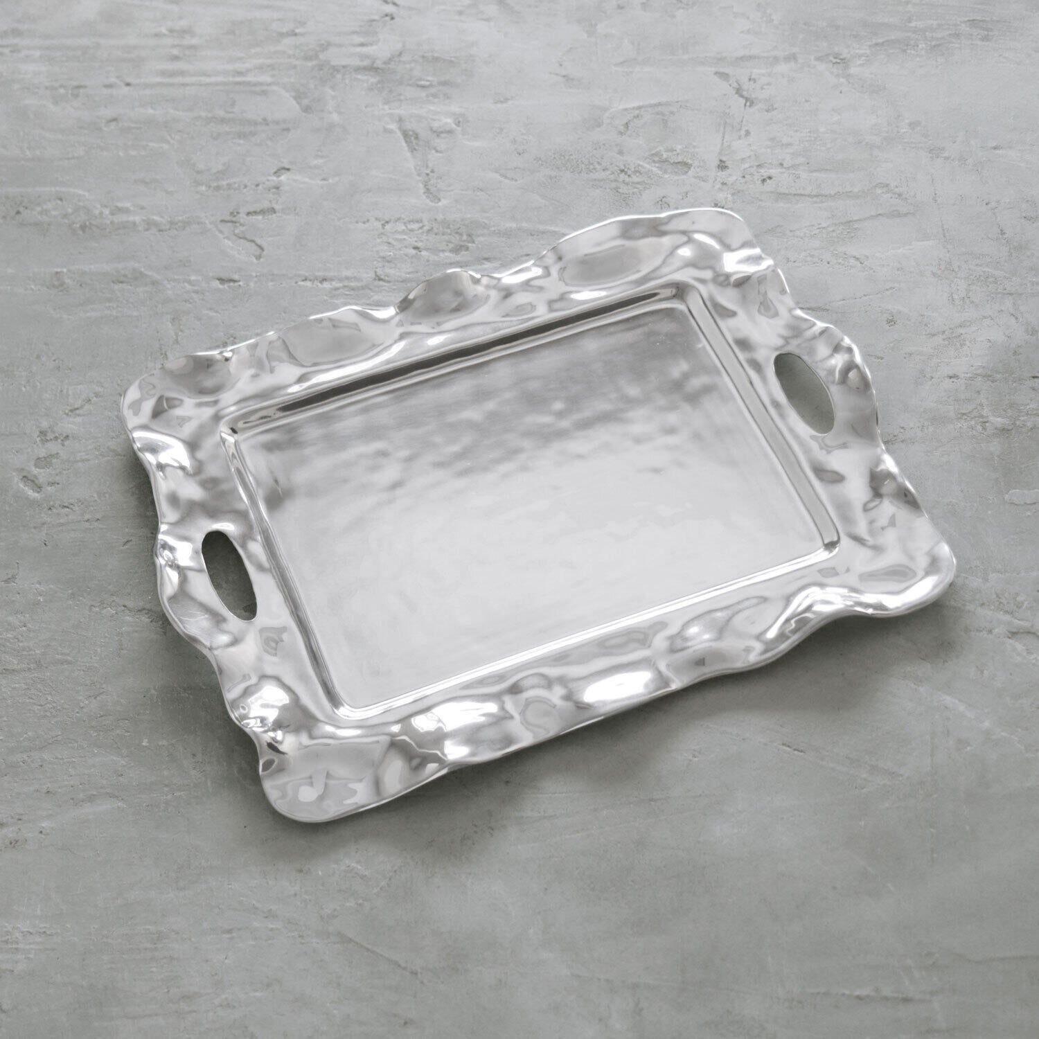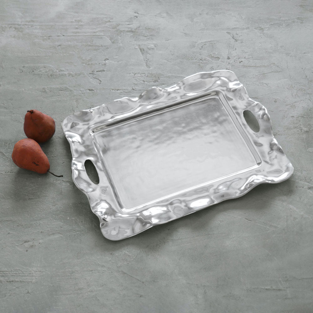 The undulating lines and generous hand-polished surface of the large VENTO Rebecca Rectangular Tray with Handles have plenty of appeal.