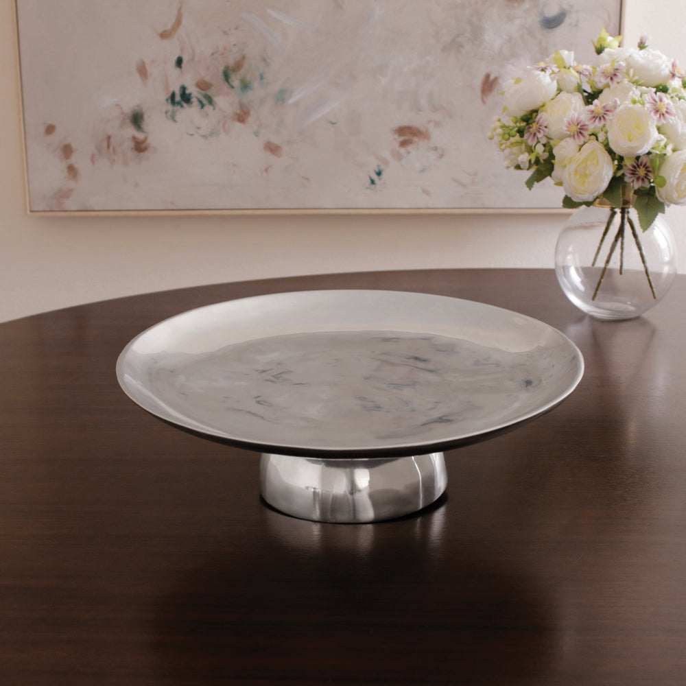 This elevated design is one you're sure to love. Beatriz Ball is all about bringing joy and fun to your home with unique serving pieces, and she's taking things a step up with the PEDESTAL Carnaval Cake Plate. Presented in polished metal with the look of silver, our PEDESTAL Carnaval Cake Plate has a bold look and classic modern styling. With its clean lines, symmetrical design, it is perfect for serving cakes or other desserts. Makes a dramatic centerpiece, too. An exquisite pedestal plate with a modern feel is a perfect addition to anyone’s home décor. An original Beatriz Ball design sustainably handmade of an FDA safe, easy-care, oven and freezer friendly aluminum alloy. Hand wash and dry.