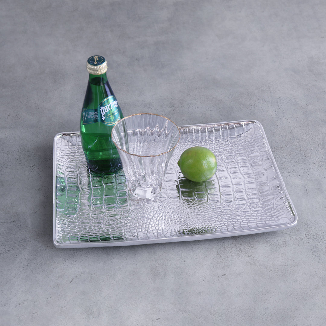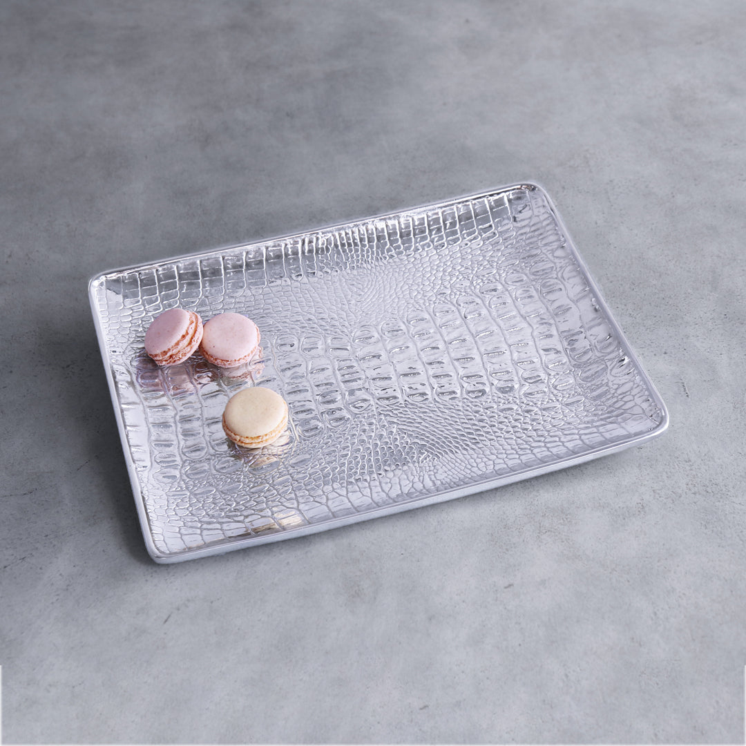 Take a walk on the wild side. Cast in a shimmering crocodile texture, select new intros in the PIELES, THANNI, FRAME and GIFTABLES Collections add a distinctive hint of the wild to your home décor. A clean and modern shape and faux animal hide finish combine for dramatic effect in this sophisticated PIELES Croc Medium Tray. This handsome tray is supremely versatile, and makes an attractive decorative accent. A functional work of art that looks great on the kitchen island, the bar, or the coffee table. Hand-finished to a lustrous shine, these richly textured, easy-care items make great gifts for men. A welcomed gift for anyone on your list! Beatriz Ball’s intensely handmade products employ eco-friendly and sustainable materials, and are crafted by artisans who trace a heritage of metalworking for generations. Each piece a one-of-a-kind work of art. An original Beatriz Ball design, sustainably handmade of a top quality, FDA safe, easy-care, oven and freezer friendly aluminum alloy.