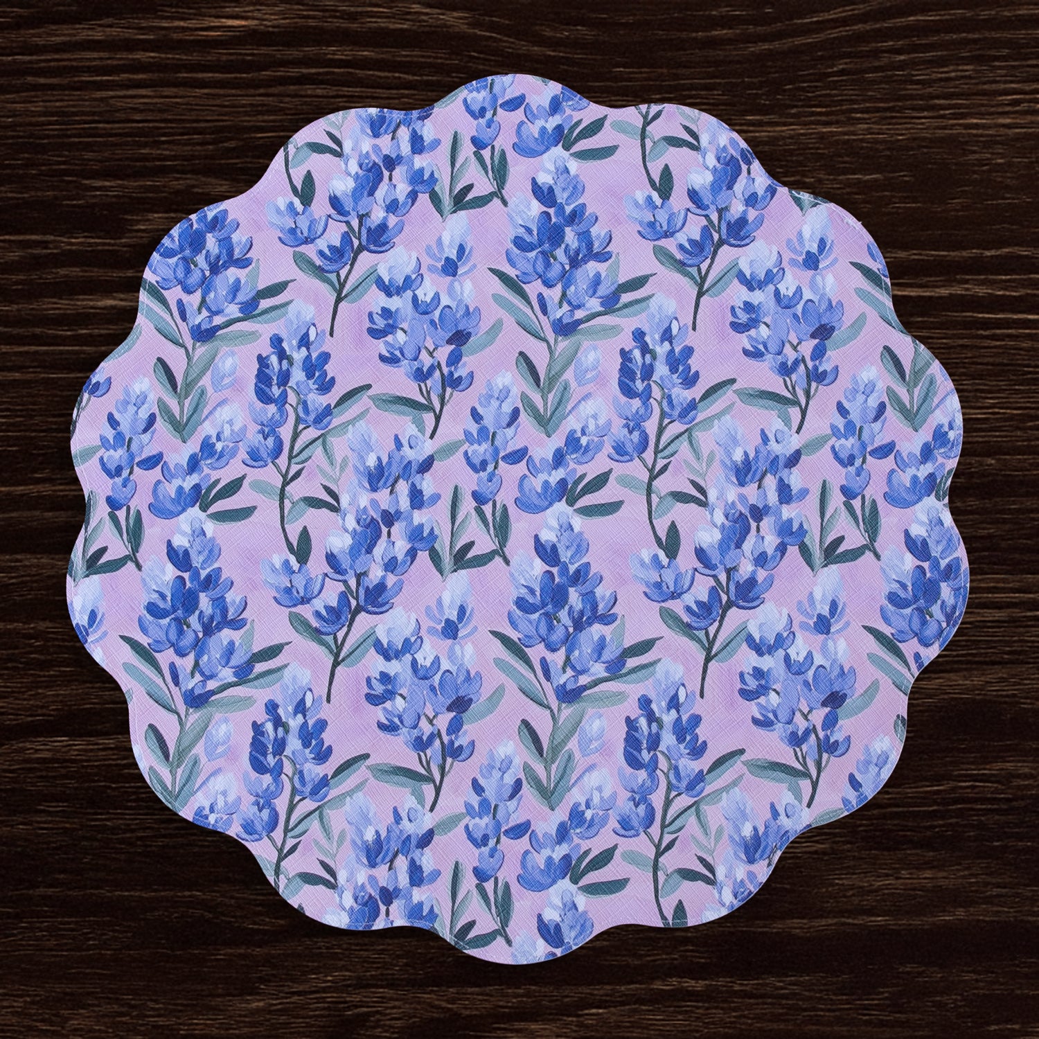 VIDA Bluebells & Flowers Reversible Round Placemats Set of 4 (Pink & Green)