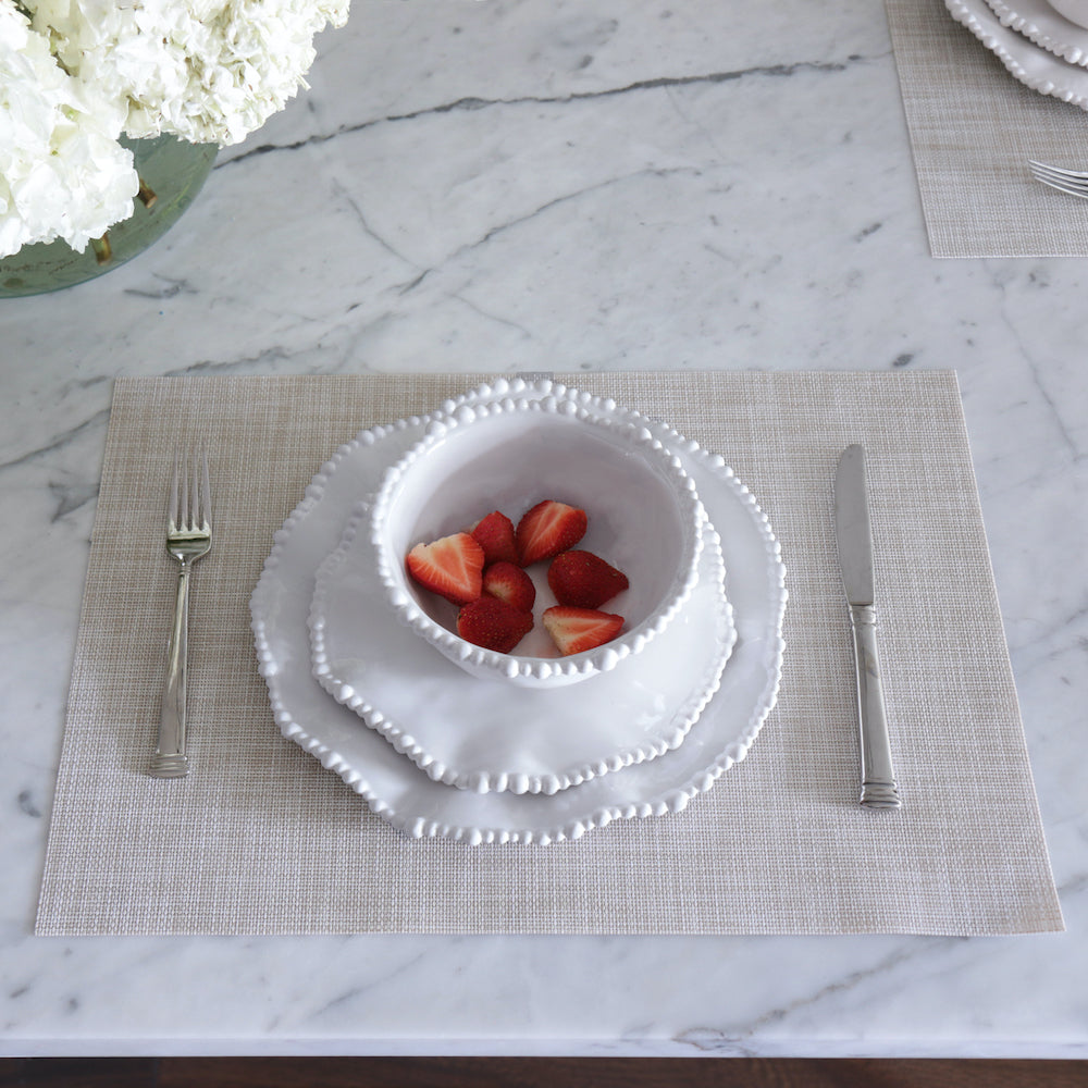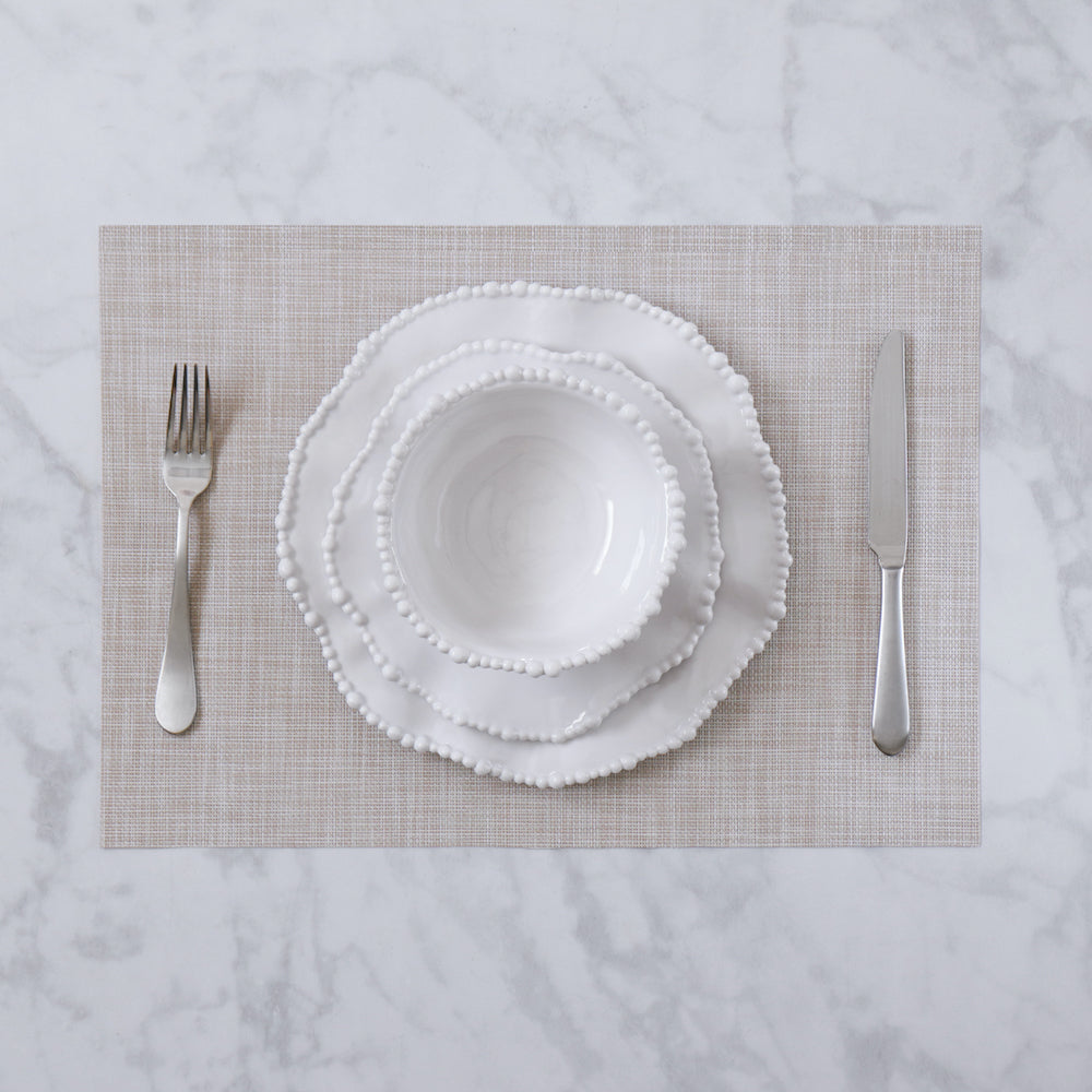 It's a natural! Beatriz Ball's VIDA Rectangular Woven Placemats Set of 4 (Natural) will give any table a pleasant makeover with a subtle blending of color, pattern, and texture. Sold in sets of four, this classic design in a natural beige tone has the look of a hand-loomed piece, but with the durability and carefree quality you'll love. Generously sized for a handsome look on your table--indoors or out. Pair them with our Easy Peasy napkins for a great addition. Easy care, wash with soap and water. Made of eco-friendly, high quality, environmentally safe PVC. Phthalate free.