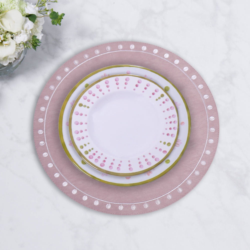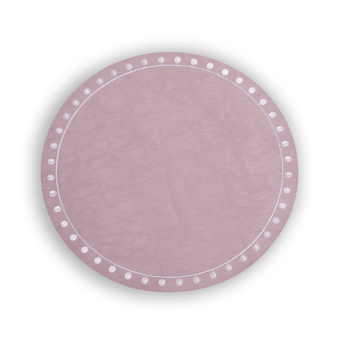 VIDA Round Embroidered Dots 15.5" Round Placemats Set of 4 (Pink and White)