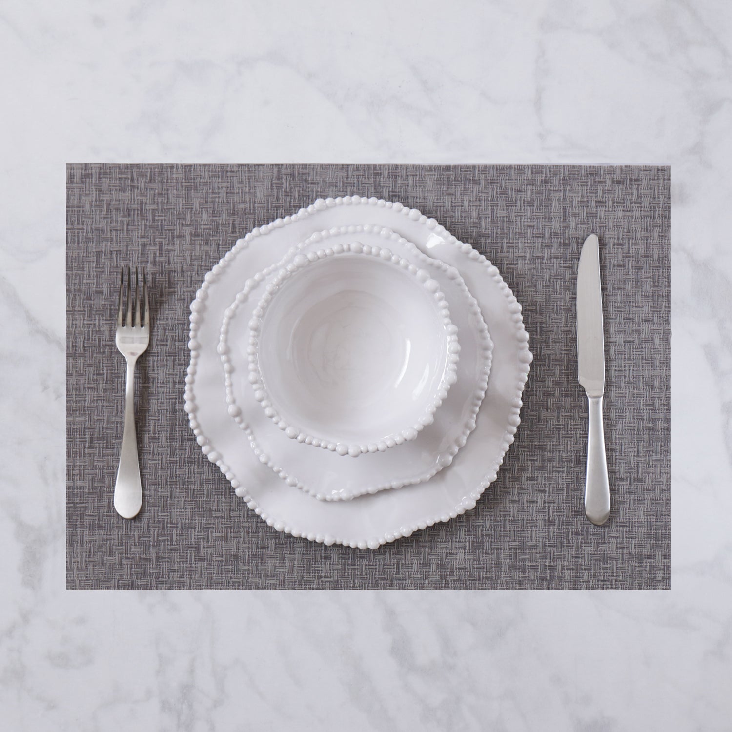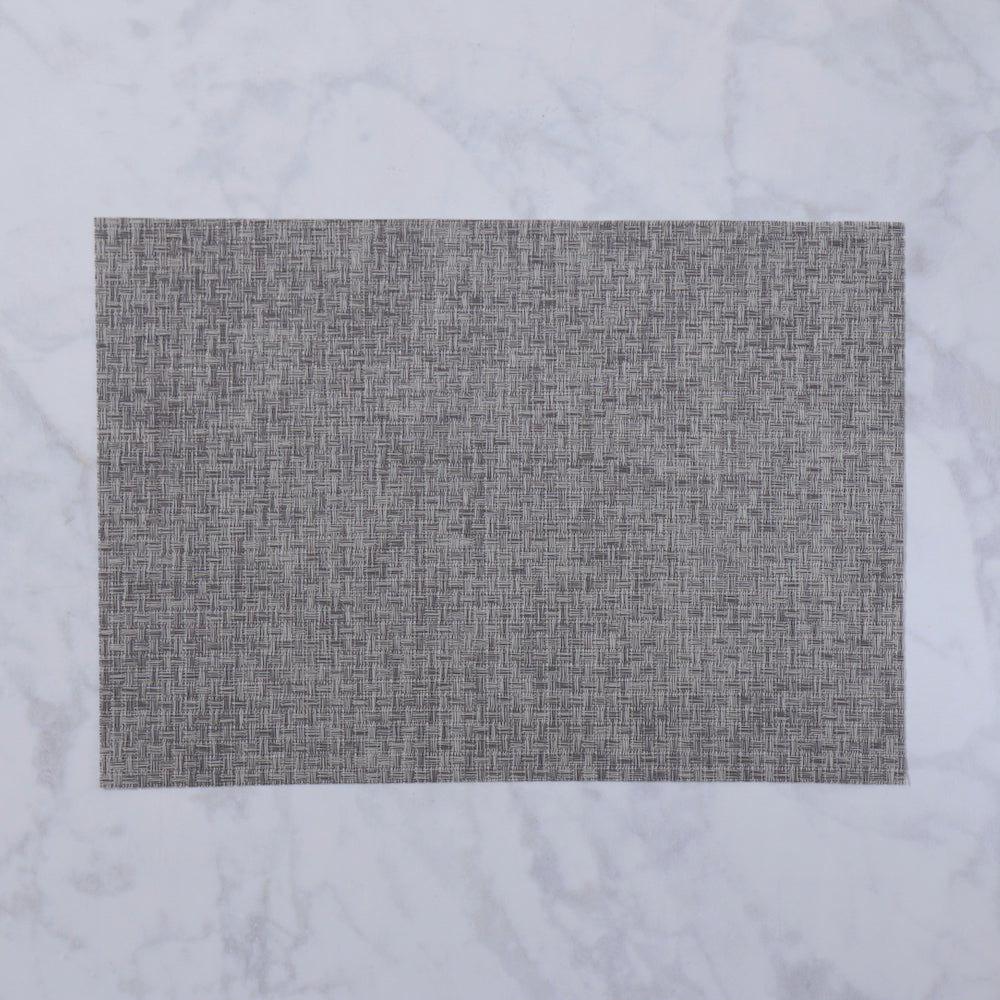 Wake up your table with these basketweave patterned placemats! VIDA Rectangular Woven Placemats Set of 4 (Charcoal) will give any table an instant makeover with a striking blend of color, pattern, and texture. Sold in sets of four, this dynamic design in a charcoal tone has the look of a woven piece, but with the durability and carefree quality you'll love. Generously sized for a handsome look on your table--indoors or out. Pair them with our Easy Peasy napkins for a great addition. Easy care, wash with soap and water. Made of eco-friendly, high quality, environmentally safe PVC. Phthalate free.