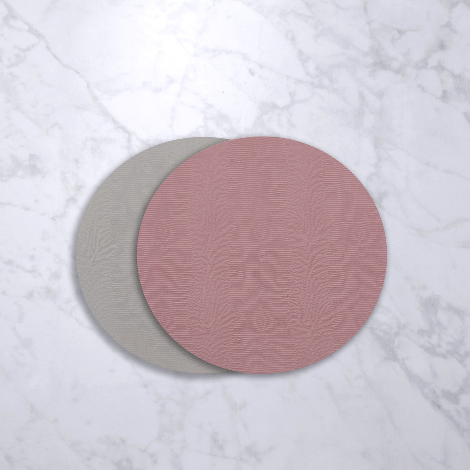 VIDA Snakeskin Reversible 15.5" Round Placemats Set of 4 (Gray and Pink)
