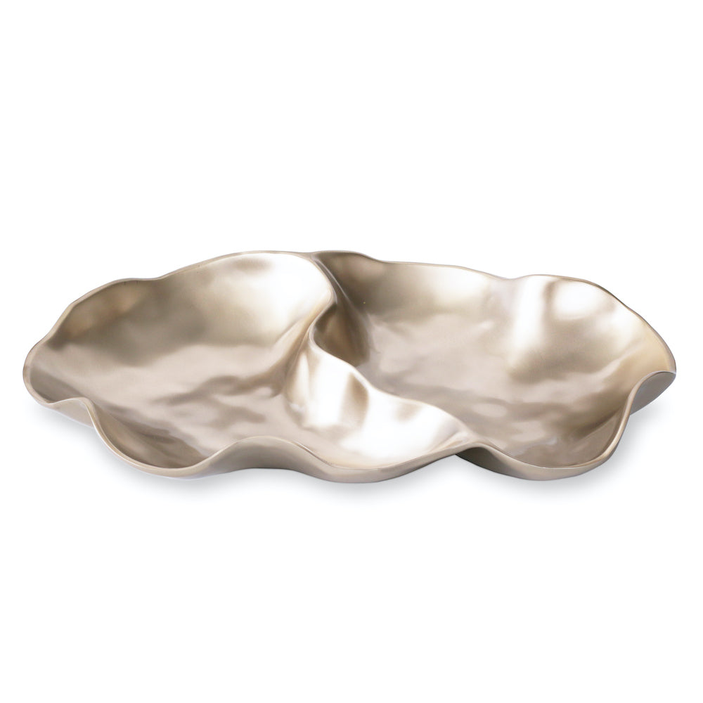 When just one gold bowl won't do. The striking sculptural form of Beatriz Ball's multifunctional SIERRA MODERN Onyx Double Dip (Gold) is a perfectly elegant solution for the lifestyle demands of today. Artfully designed and attractively finished, the sensuous item is the very essence of versatility. Presented in a brushed gold finish, the cleverly designed piece separates and harmonizes your favorite foods. Perfect for presenting dips, salsas, and garnishes in style. The double dip offers stylish design, and elegant practicality. Food- and dishwasher-safe, decorative, and also perfect for serving, the divided piece will add a modern new dimension to your home. Dishwasher safe, pieces will not chip, peel or stain. Great gift item! Beatriz Ball’s intensely handmade products use eco-friendly and sustainable materials and are crafted by artisans who trace a heritage of metalworking for generations. Made of a top quality, FDA safe, easy-care aluminum alloy.