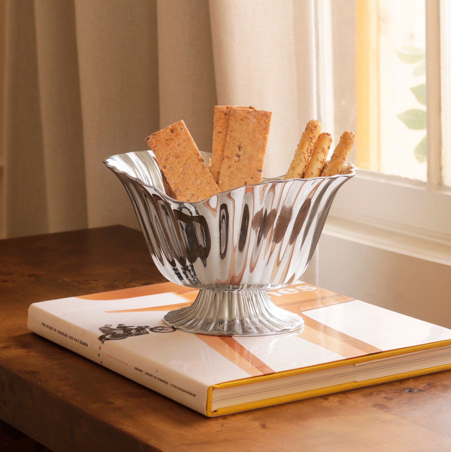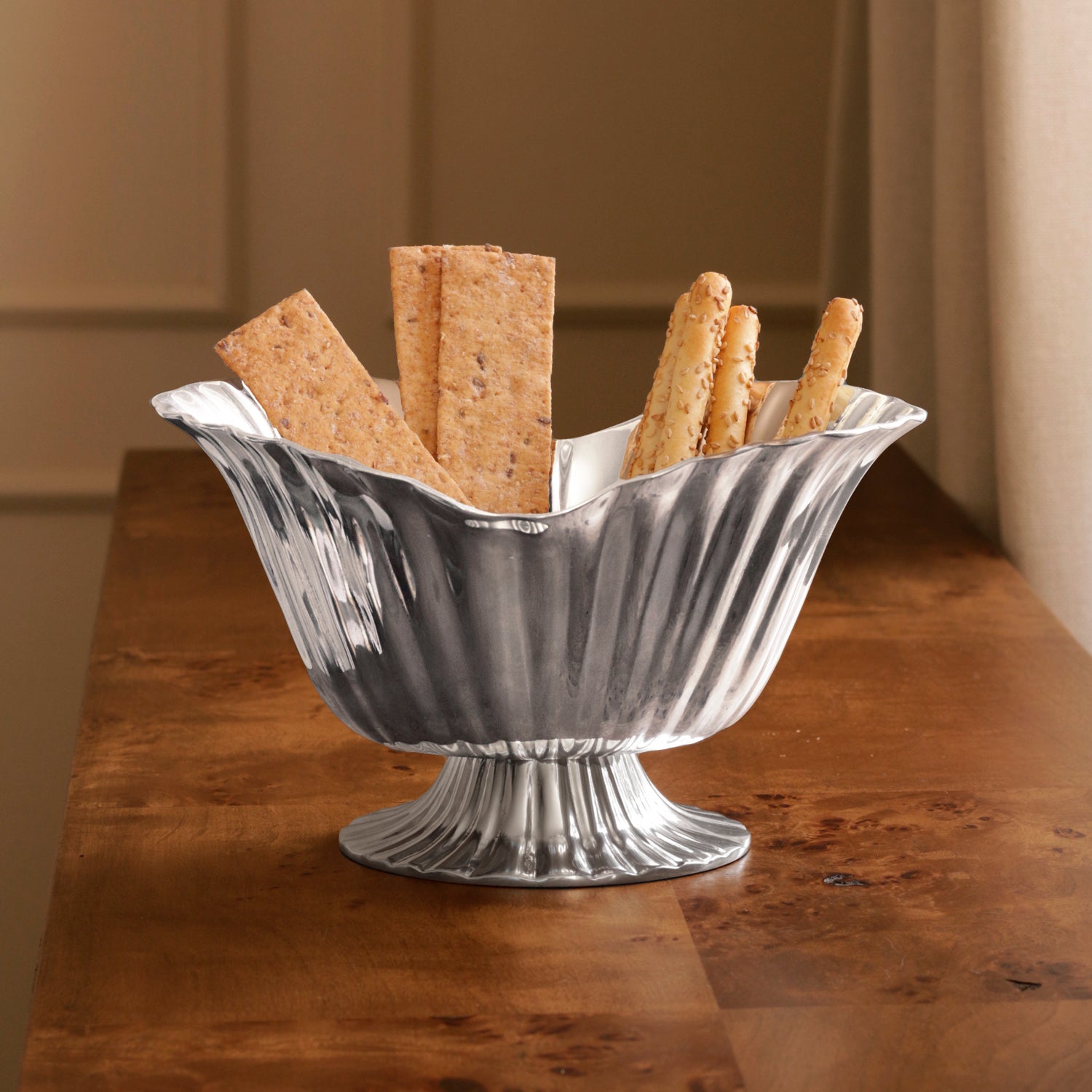 Bring heirloom charm to the table with the VINTAGE Vienna Medium Grissini Pedestal, featuring beautifully fluted surfaces and elegant proportions. Perfect for serving breadsticks, appetizers, or small desserts, it also doubles as a decorative centerpiece.