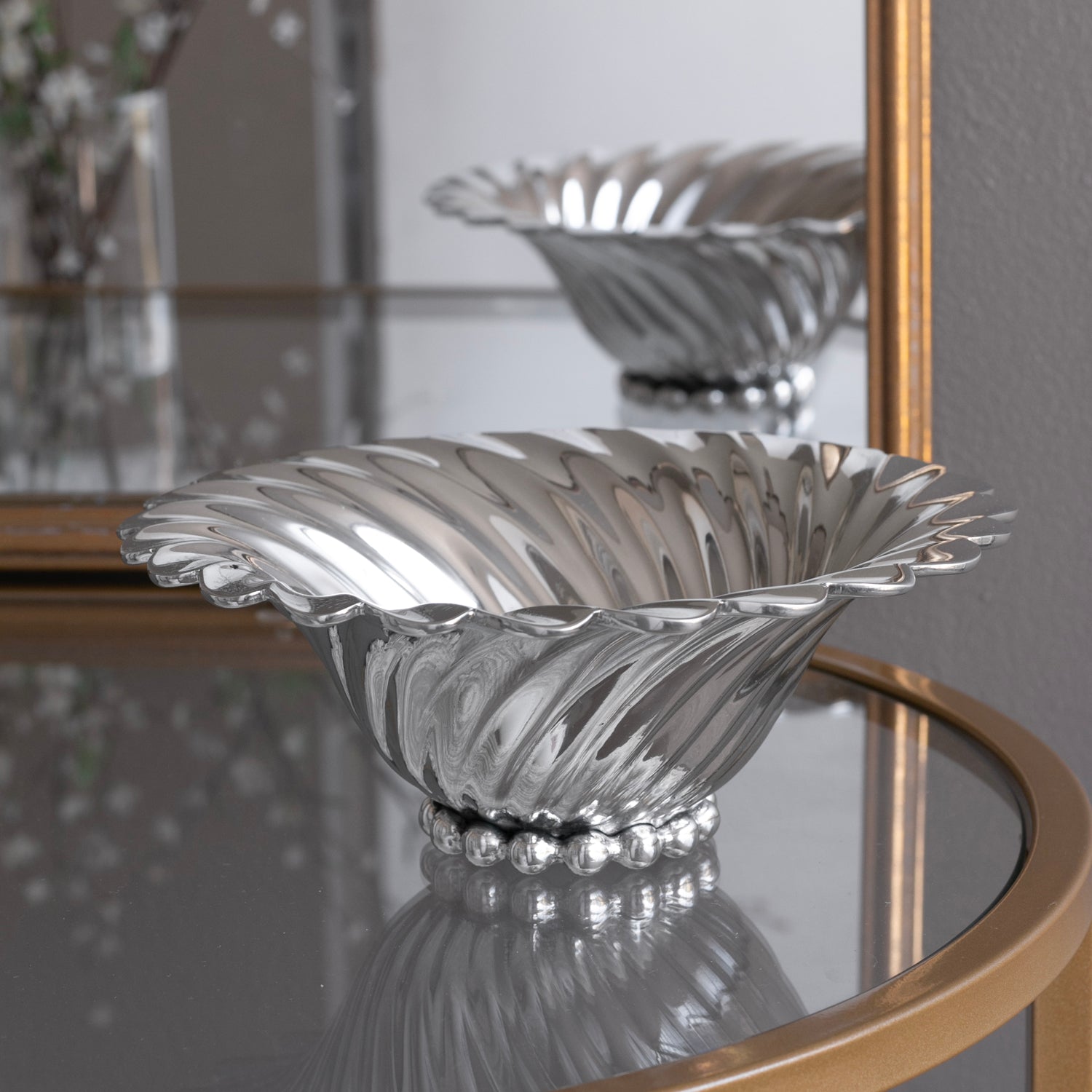 Perched atop a gorgeous ring of shimmering pearls, the bowl has a sensuous and elegant feel. Ideal for serving your favorite foods, it also makes a stunning centerpiece or decorative accent.