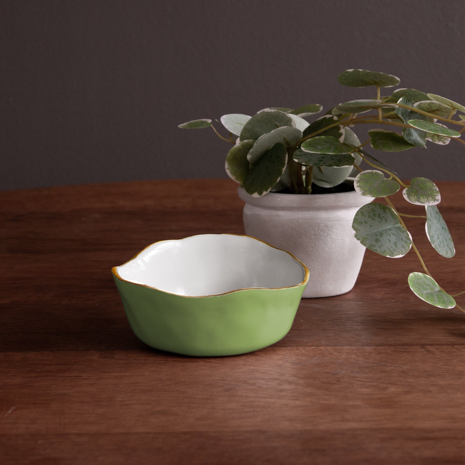 The ENCANTO Soho Wine Coaster (Green) is a spirited expression of ENCANTO style. Notable for its compact size, simply elegant shape, and brilliant green finish rimmed in gold, the piece is an awesome design that is as handy as it is decorative. Designed to hold a wine bottle, the piece is also great as a catch-all on the desk, vanity or bedside table. The ENCANTO pieces are all about classic shapes, re-invented in lively colors. A fabulous gift item for brides, and perfect for anyone who loves to entertain colorfully. Beatriz Ball’s intensely handmade products use eco-friendly and sustainable materials and are crafted by artisans who trace a heritage of metalworking for generations. Made of a top quality, easy-care, aluminum alloy with an enamel finish. This item is for decorative purposes only and is not food safe. Dishwasher safe.