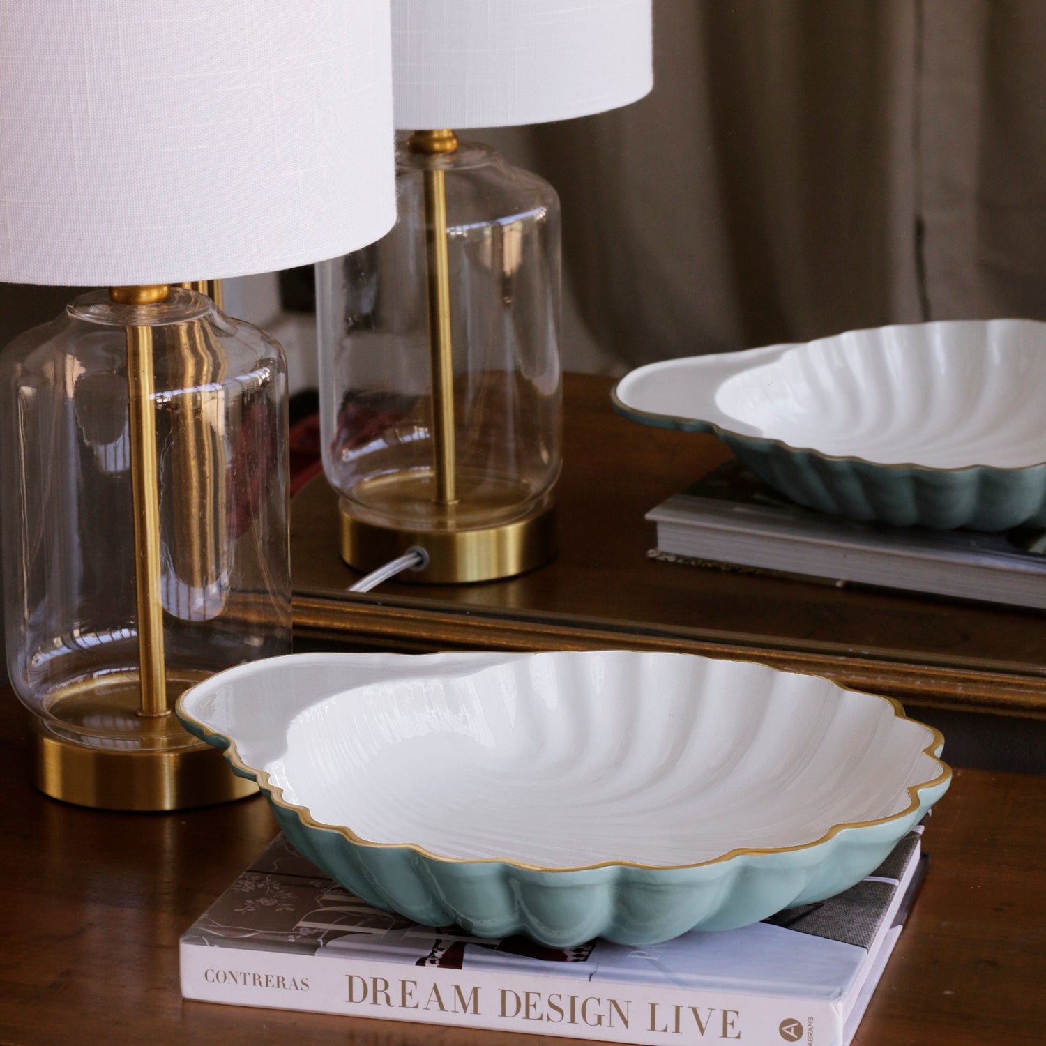 ENCANTO Medium Scallop Shell (Turquoise and White)
